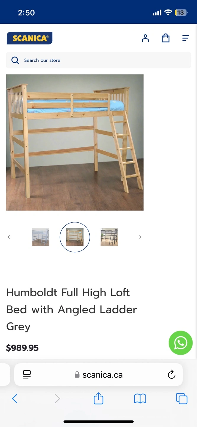 Scanica Humboldt Full High Loft Bed with Angled Ladder The Humboldt Full High Loft Bed with Angled Ladder in natural finish is a stylish and space-efficient addition to any room. Perfect for kids, teens, and adults, this loft bed is crafted from solid wood. Free from particle board, veneer, or MDF, this bed is built to last and provide the sturdy support you need.