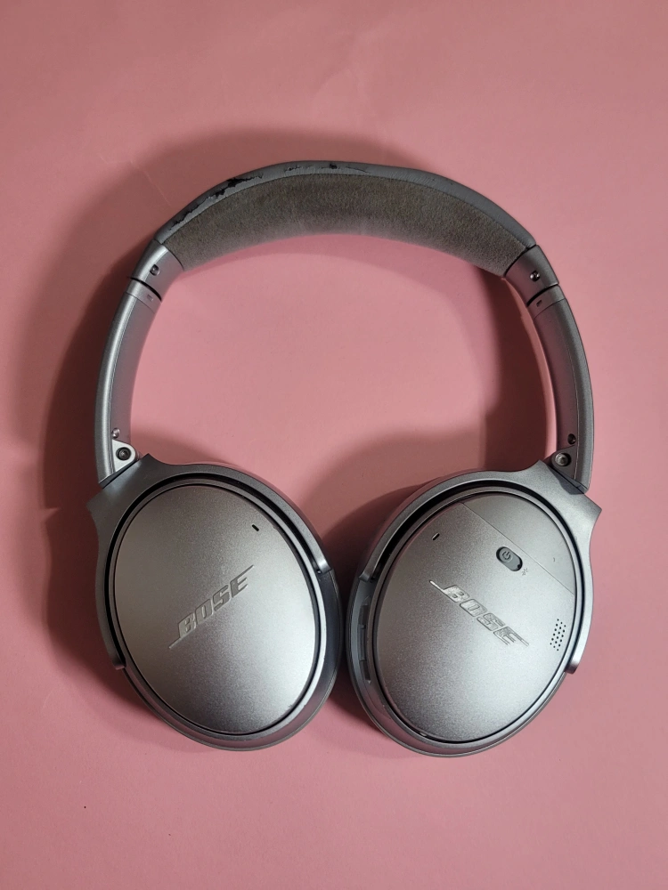 Bose QuietComfort 35 II wireless headphones. Silver colour. Some cosmetic wear on headband. Great sound quality. Includes charging cable.