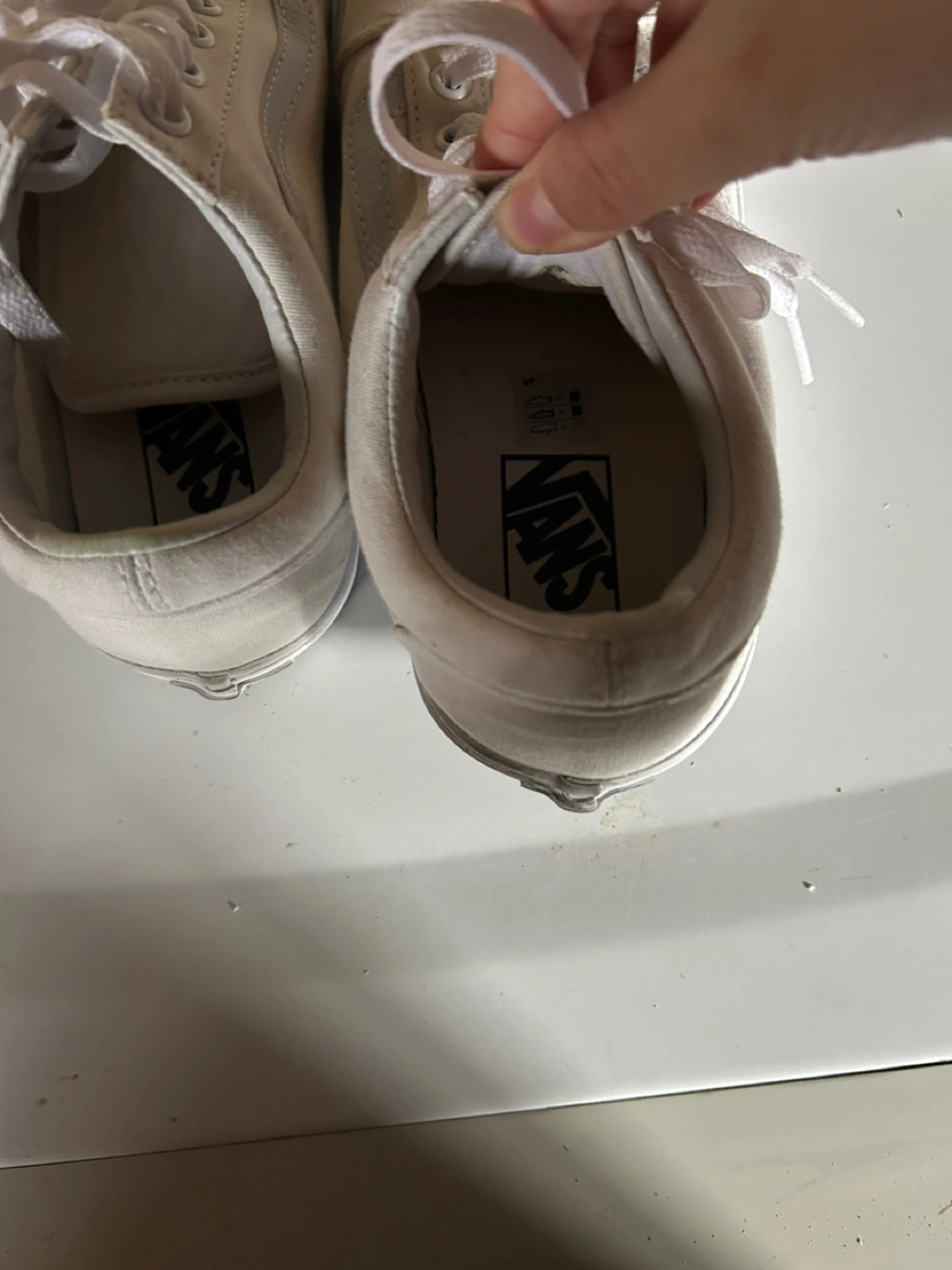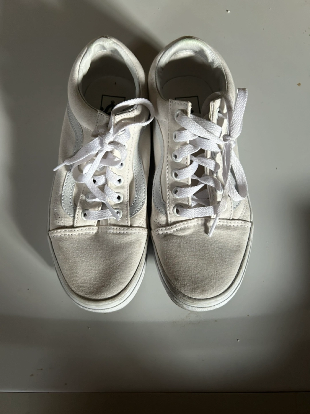 52Pre-owned Vans Old Skool sneakers. Classic white canvas design. Slight wear visible.