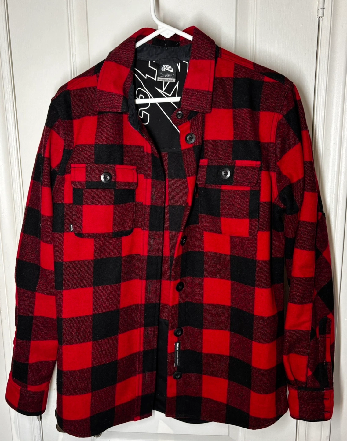 Nike SB Red/Black Buffalo Plaid Wool Vintage Button Jacket/Shirt Mens S