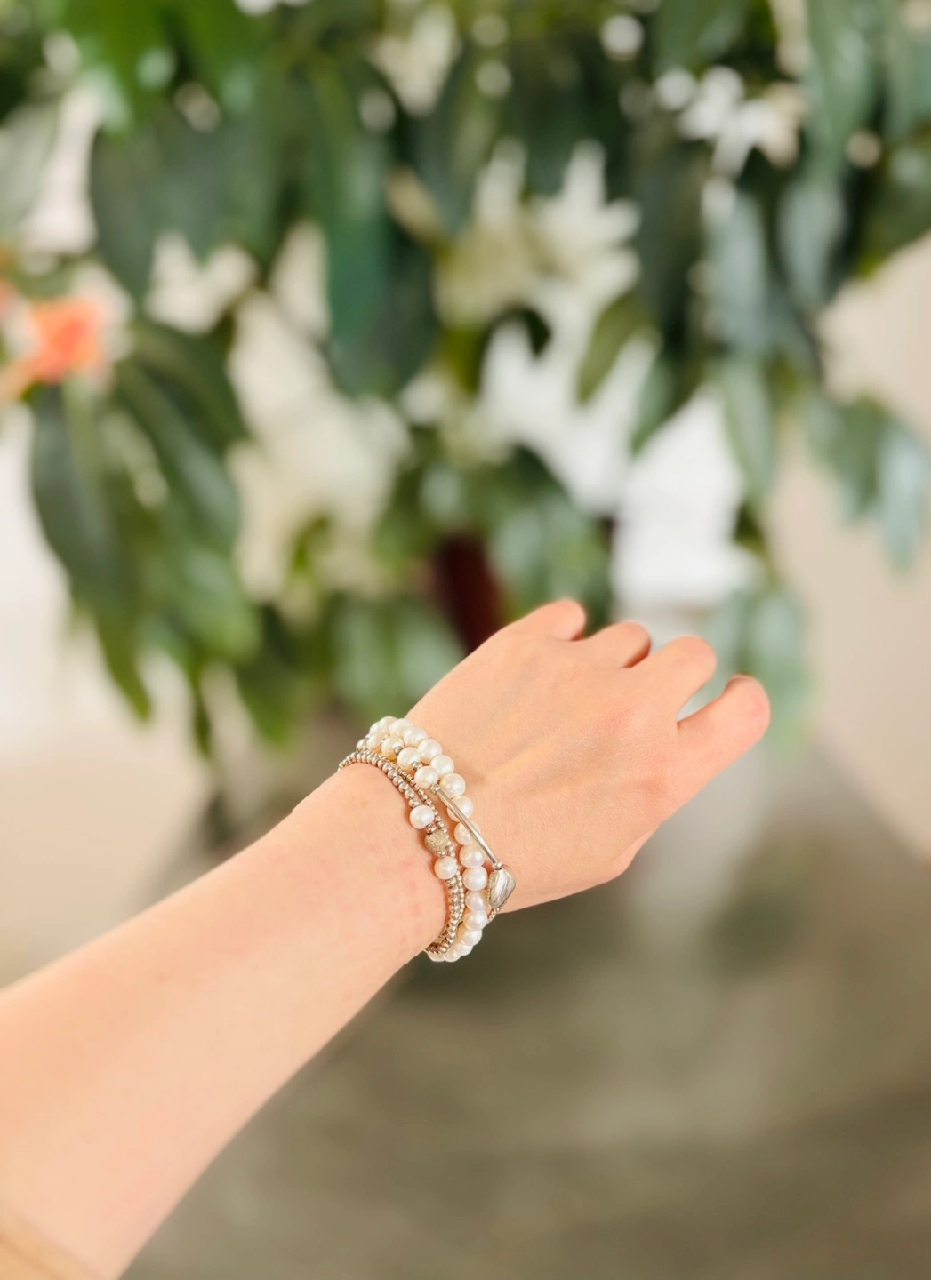 Fresh water Pearl & sterling Silver Beaded wrap-around bracelet in great condition! The price is firm. It can wrap around 3 or 4 times depending on your wrist size, it’s one long piece, not separately bracelet. 🥰💝 Feel free to ask for more pictures!🤝🤝
