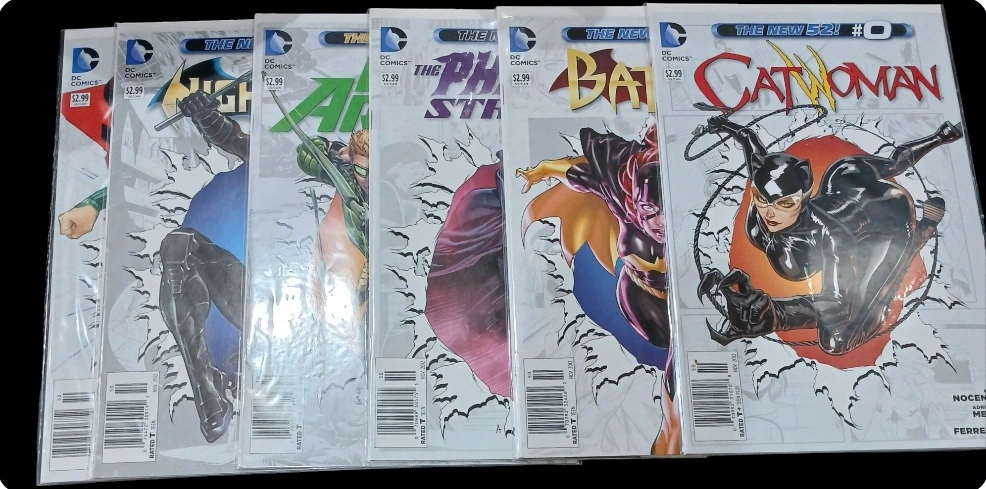 Collection of The New 52 DC Comics #0 issues. Includes Superman, Nightwing, Green Arrow, Catwoman, Batgirl, and The Phantom Stranger. First issues of relaunched series. Great for collectors.