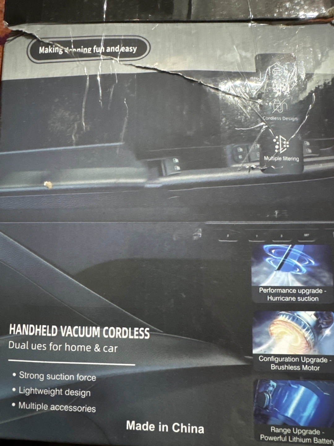 Portable and powerful vacuum. Lightweight design. Multiple accessories included. Great for home and car use. Strong suction.