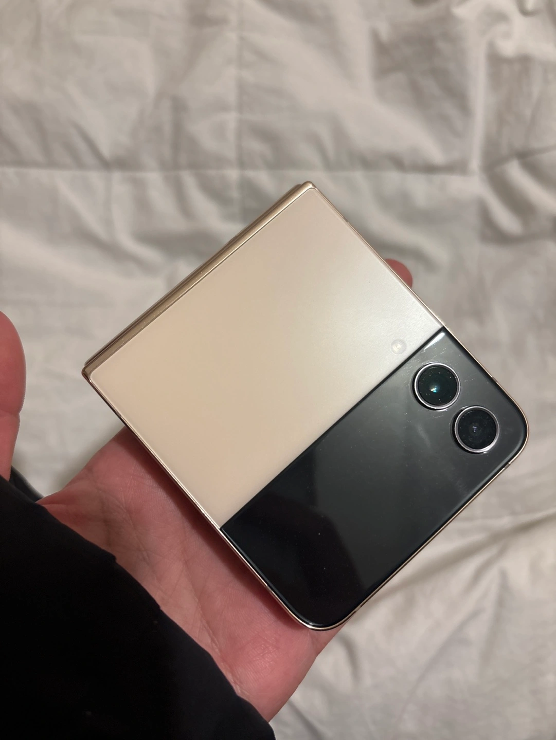 Foldable smartphone. Beige and black colour. Dual camera. Good condition. Want to sell is ASAP cause I want to buy a new one will discount $10 for anyone buy it
