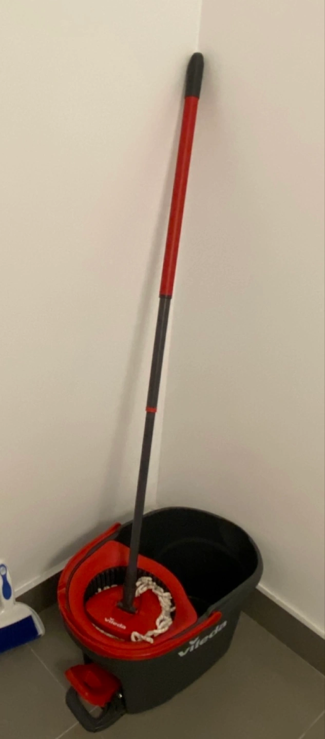 Have two replacement the mop thing. Red and grey spin mop. Includes bucket with wringer. Great for cleaning floors.