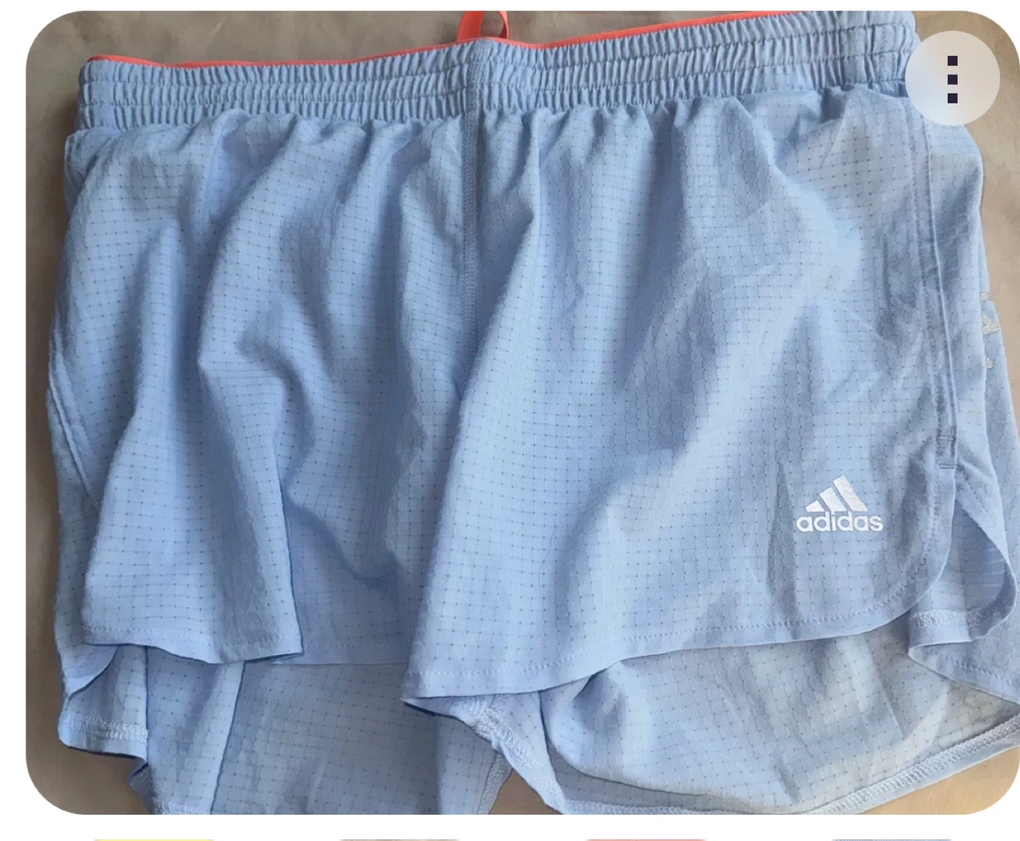 Lightweight running shorts. Elastic waistband. Side slits. Adidas logo. Perfect for workouts.