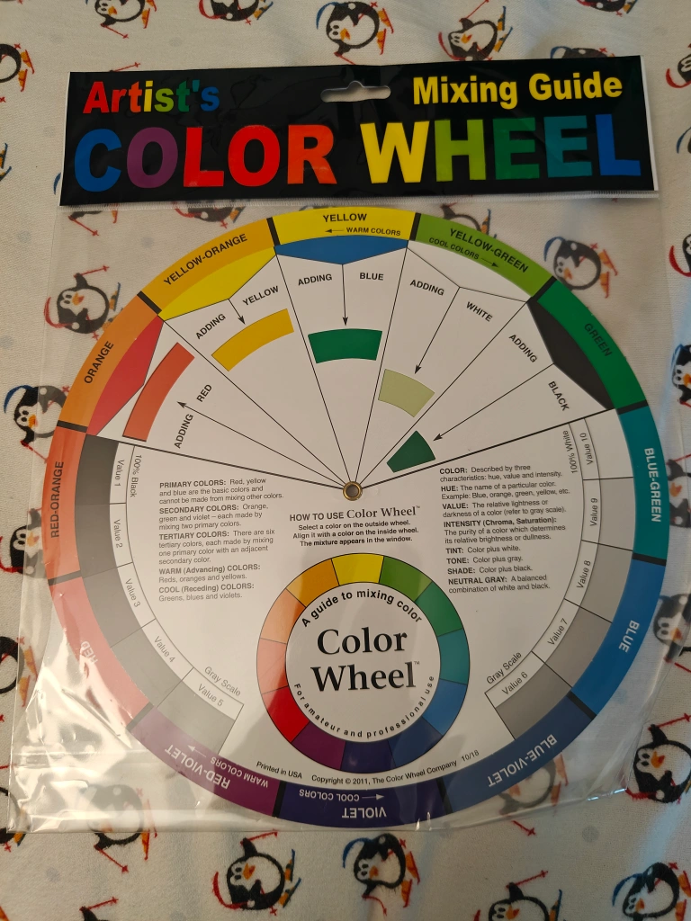 New Color Wheel mixing guide for artists. Features a colour wheel and mixing guide. For amateur and professional use.
