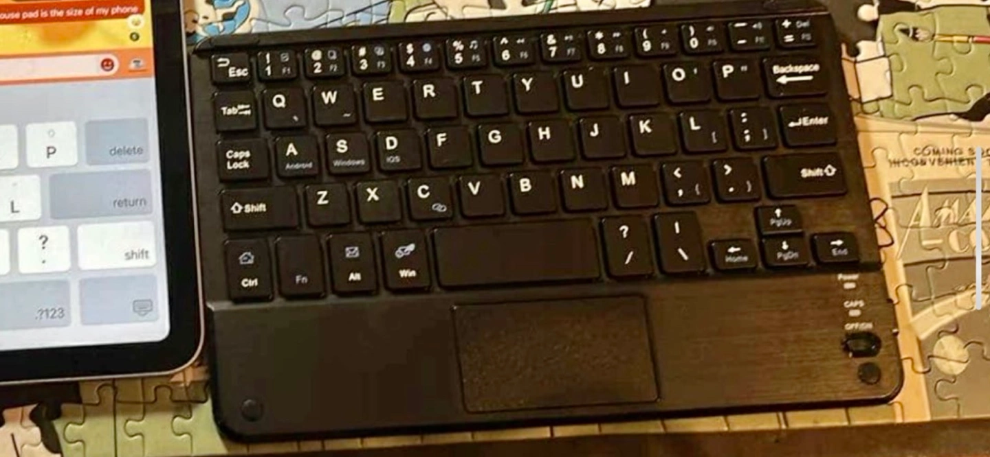 Compact keyboard, ideal for travel. Features a built-in touchpad. $10. If you have your own cord or $15 cord included.
