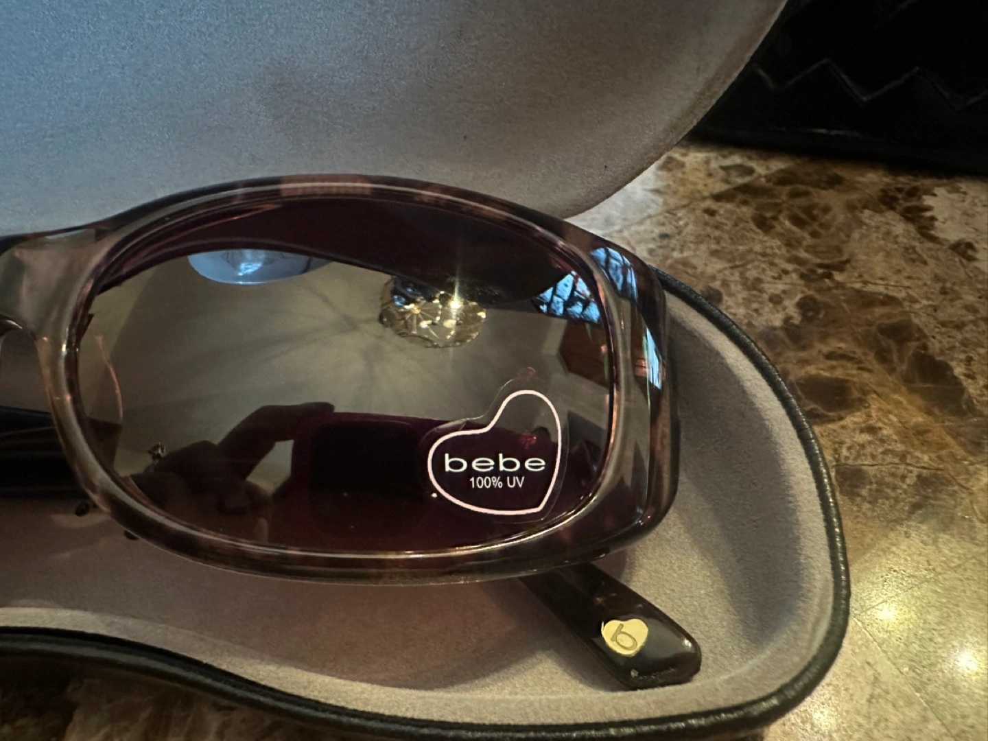 Brown tortoiseshell sunglasses. Come with a hard case. 100% UV protection.