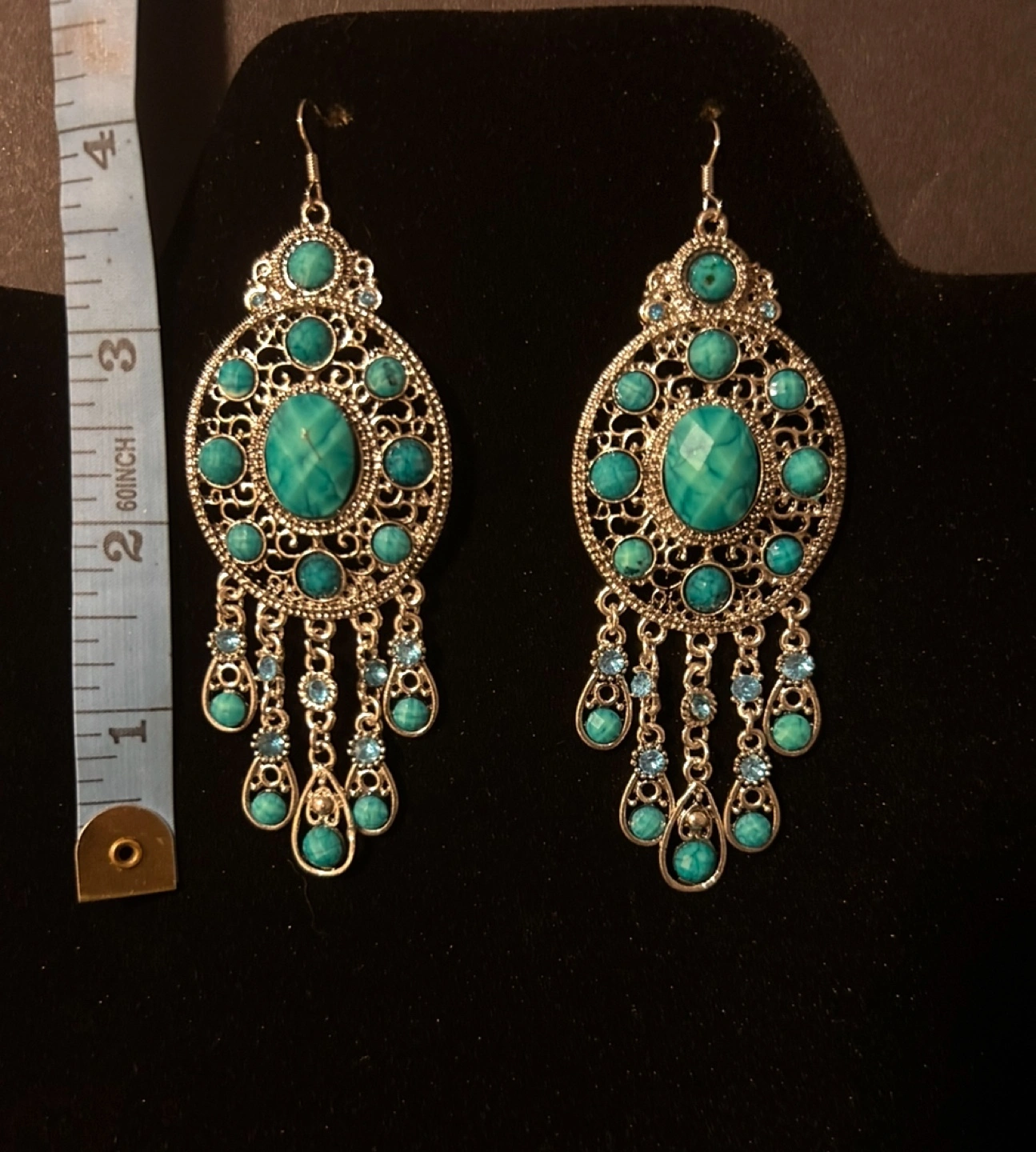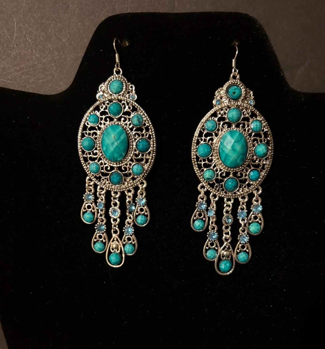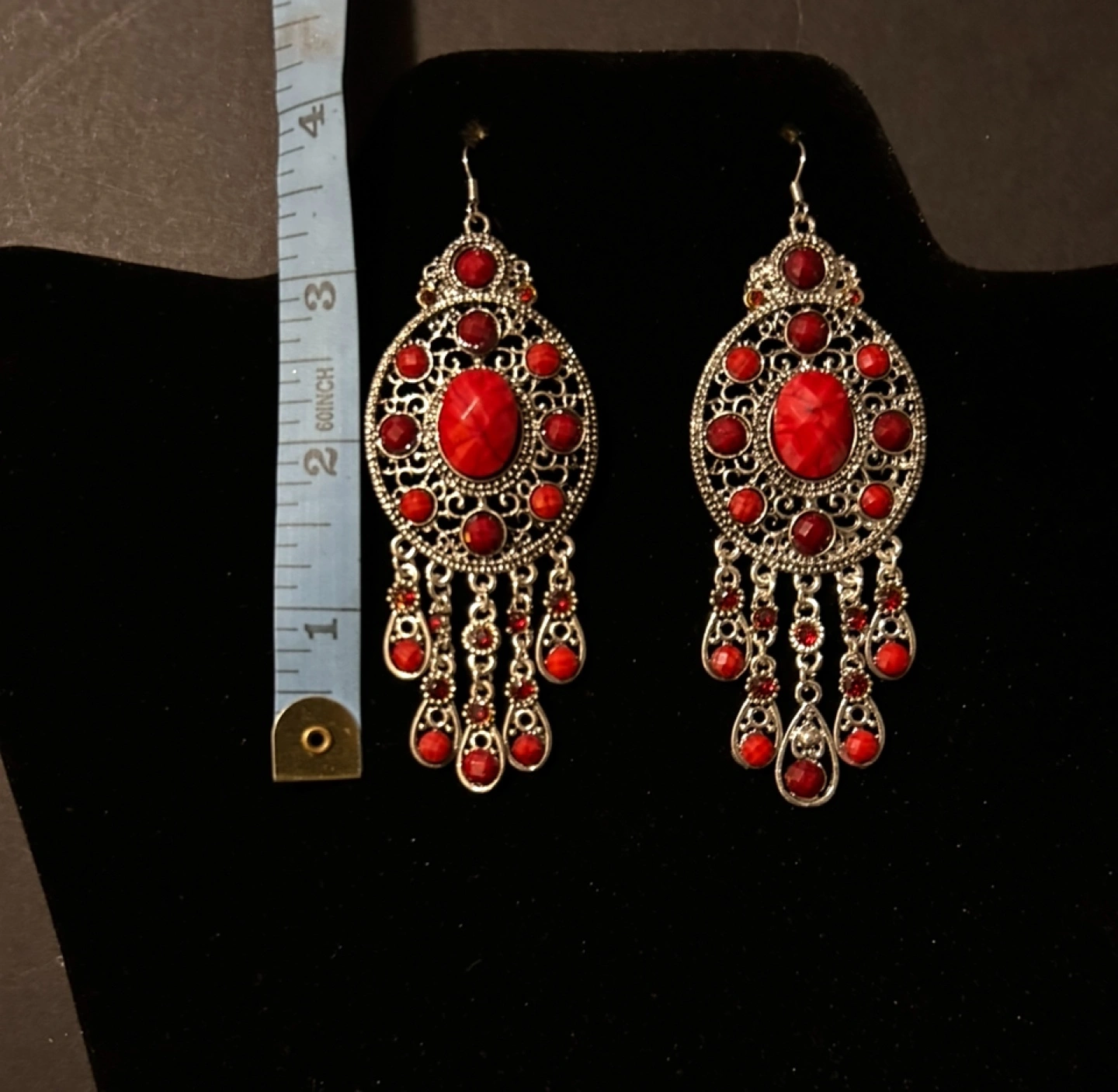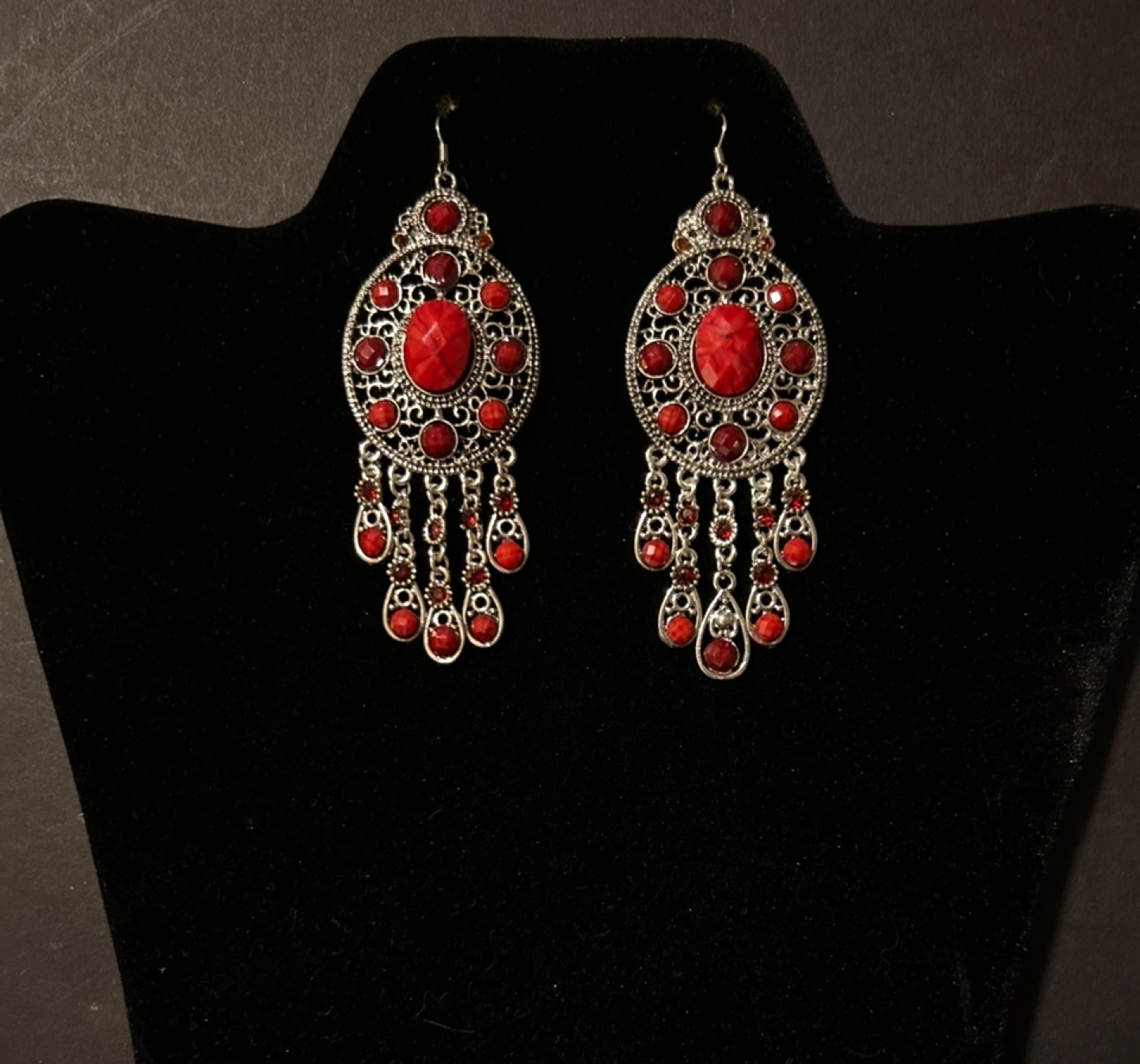 Statement Dangle Earrings - Red, Blue, or Turquoise