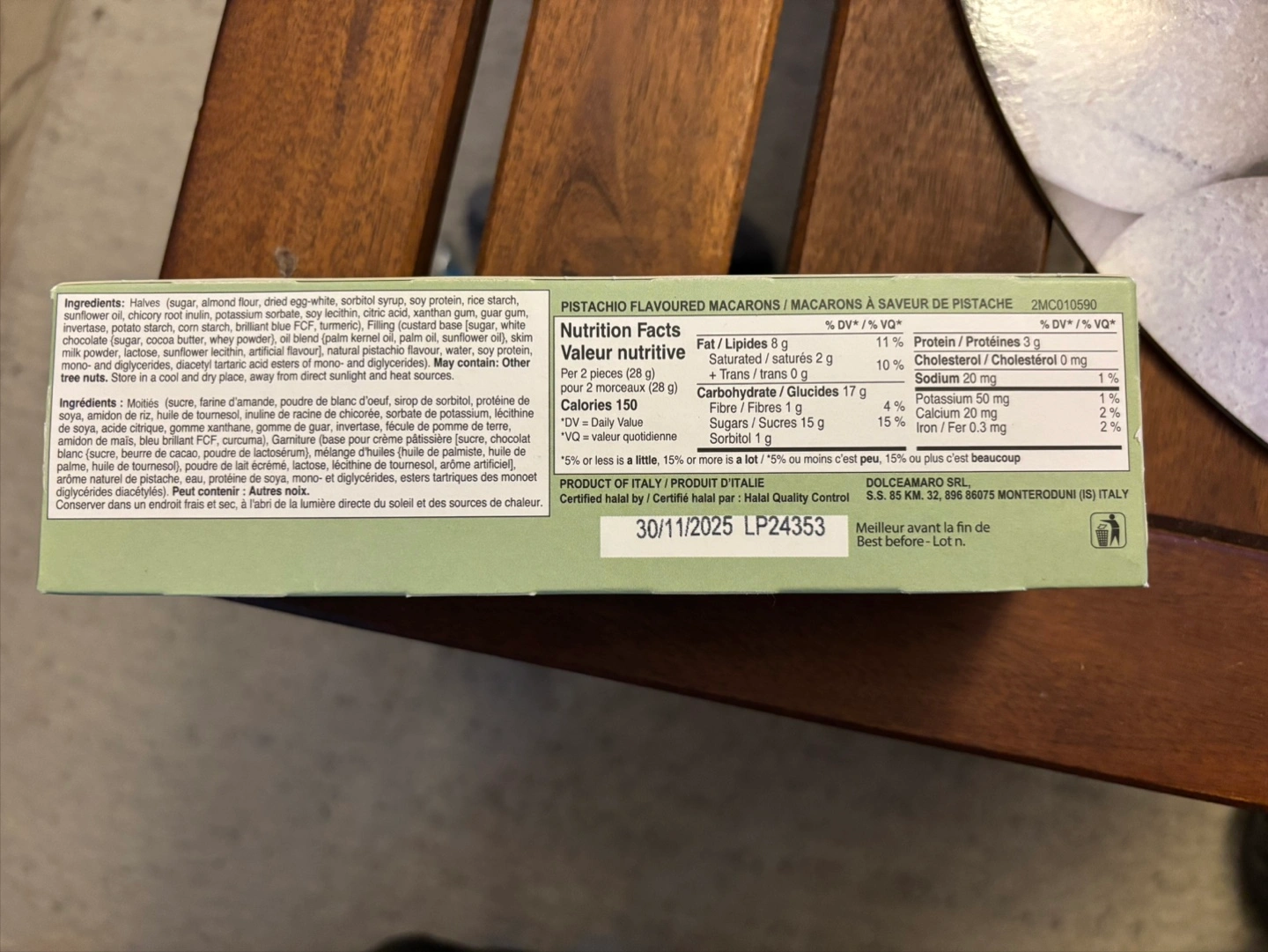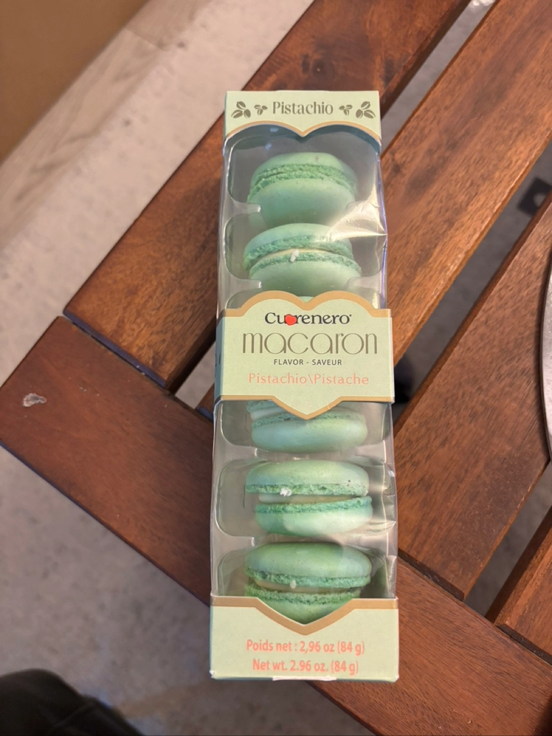 Box of five pistachio-flavoured macarons. See photos for details of the product.