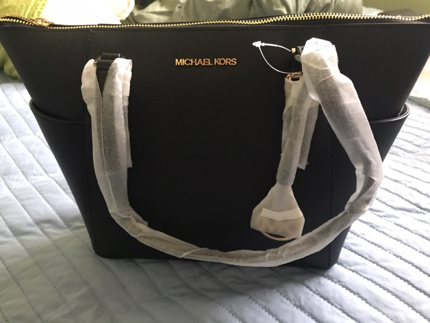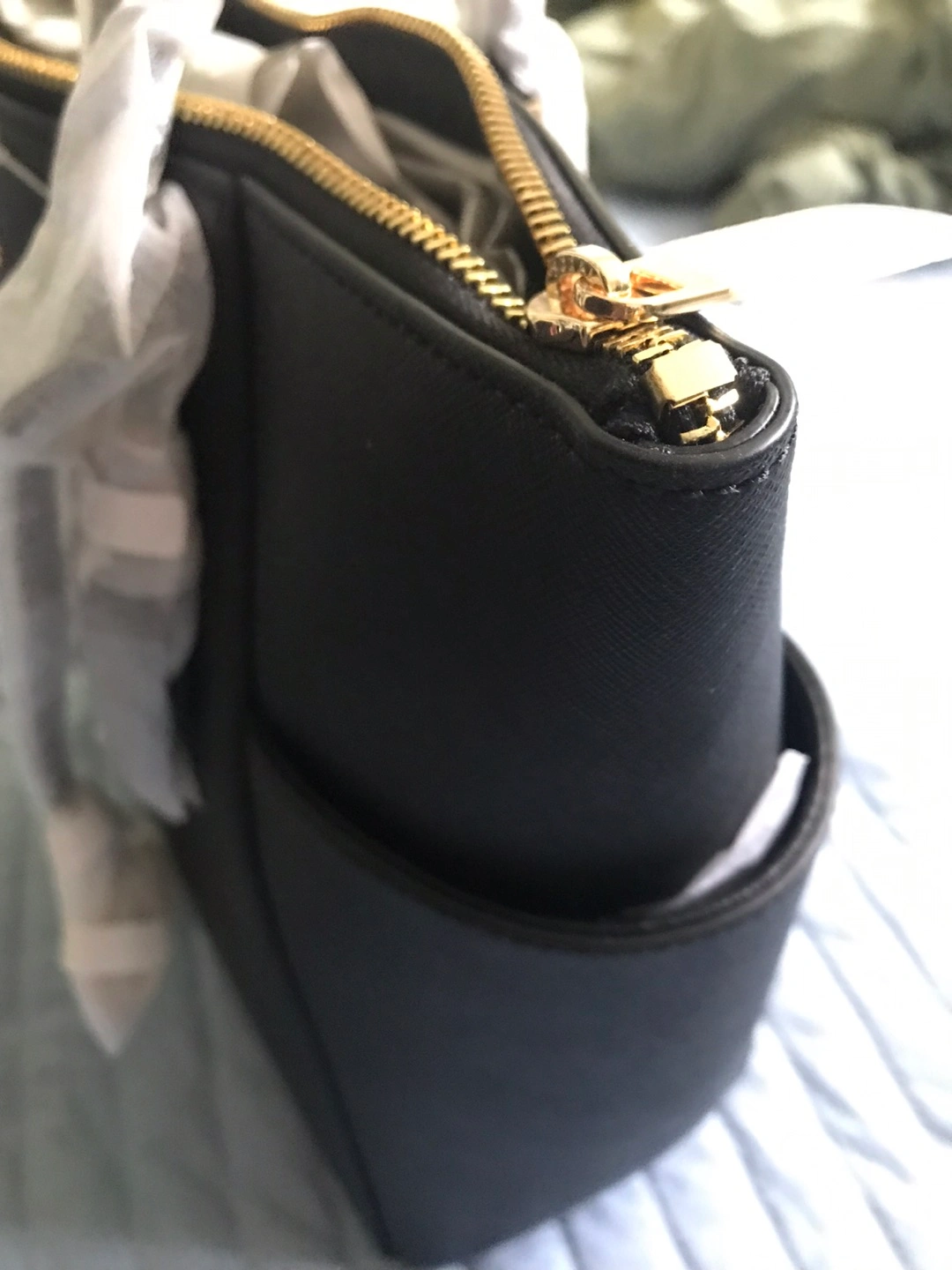 BNWT never used, came with all hardware covered. Two side slip pockets, top-zip, inner pockets/zip pocket. Did not come with dust cover , came as pictured from Michael Kors. Paid original price