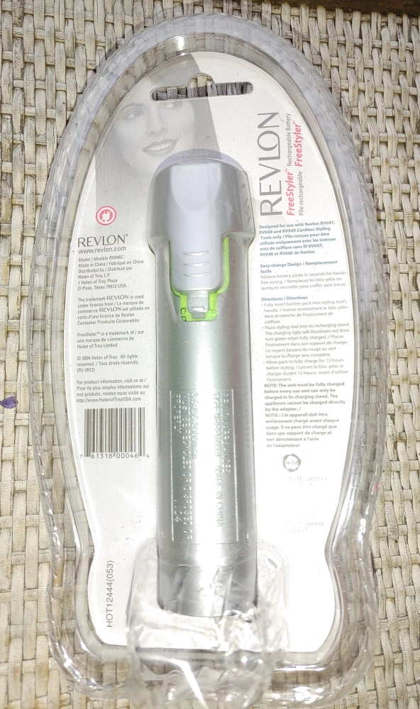 Cordless rechargeable styling tool battery. Lightweight, easy to use. Great for touch-ups. Model RV047/RV046.