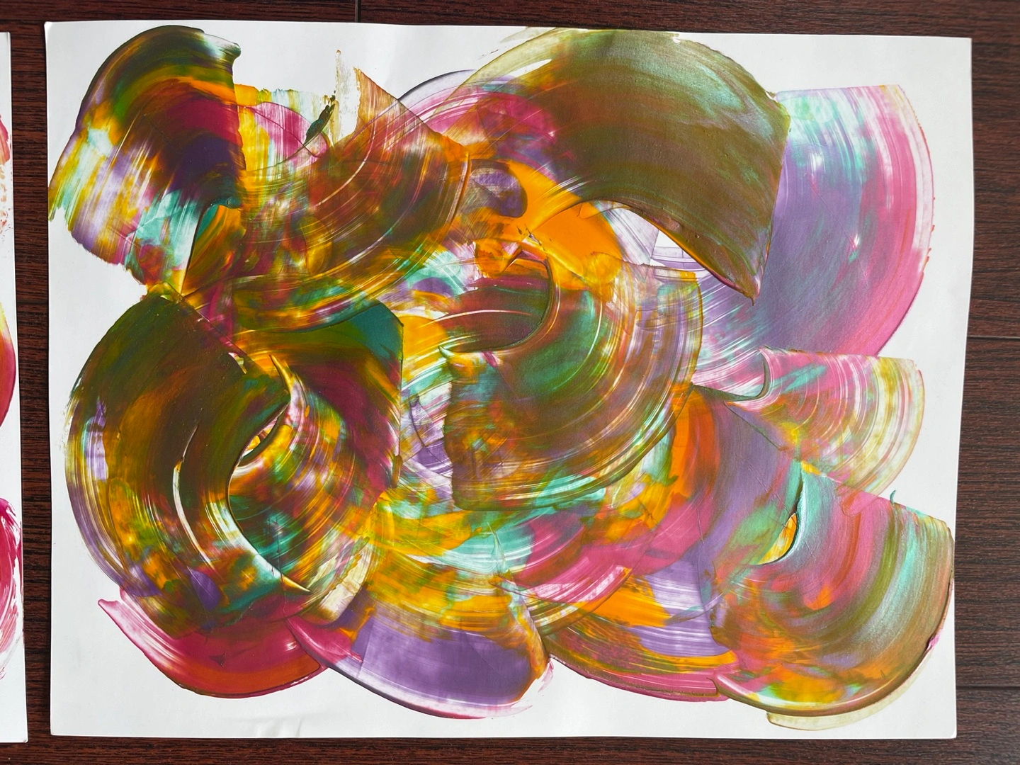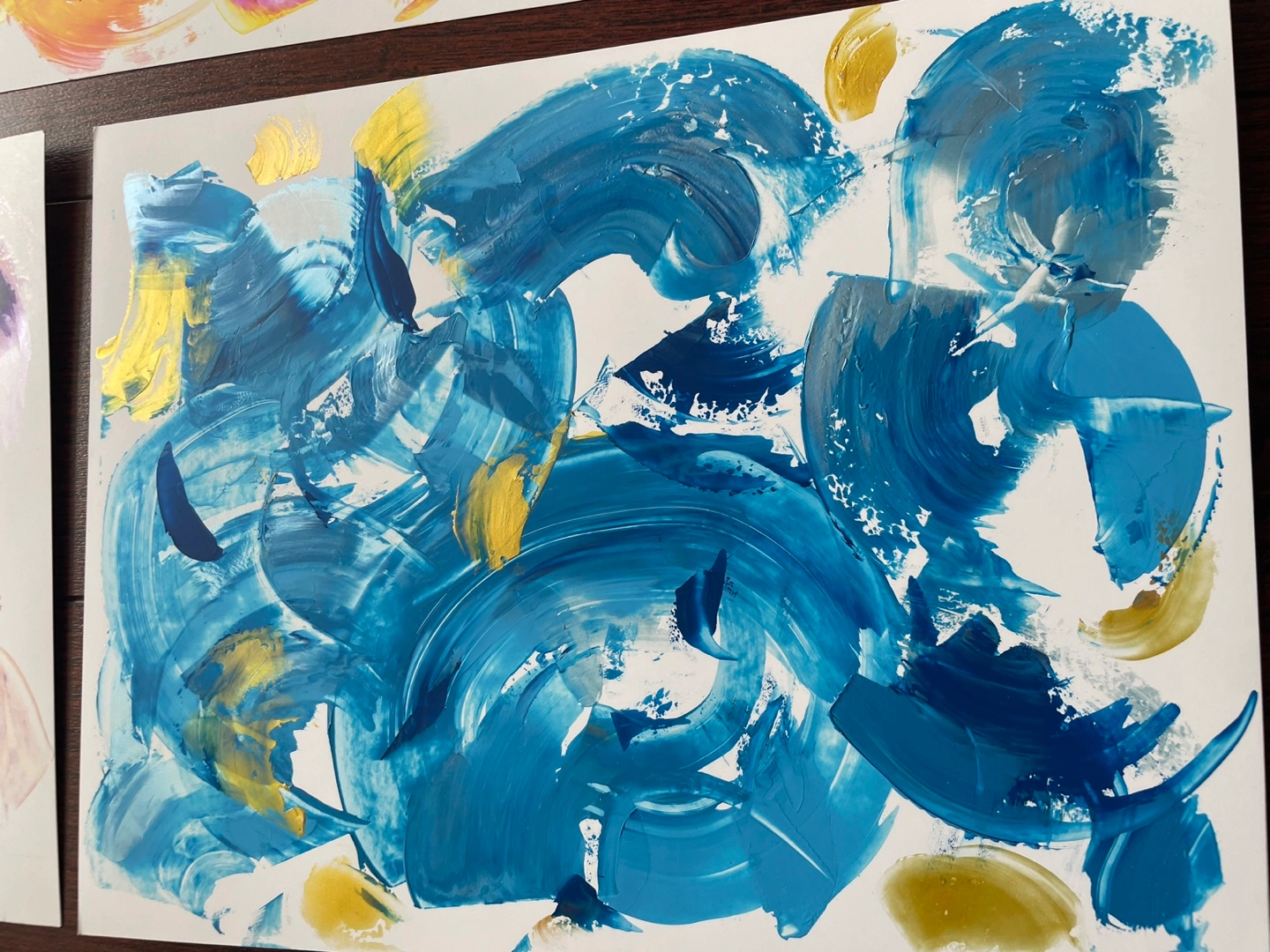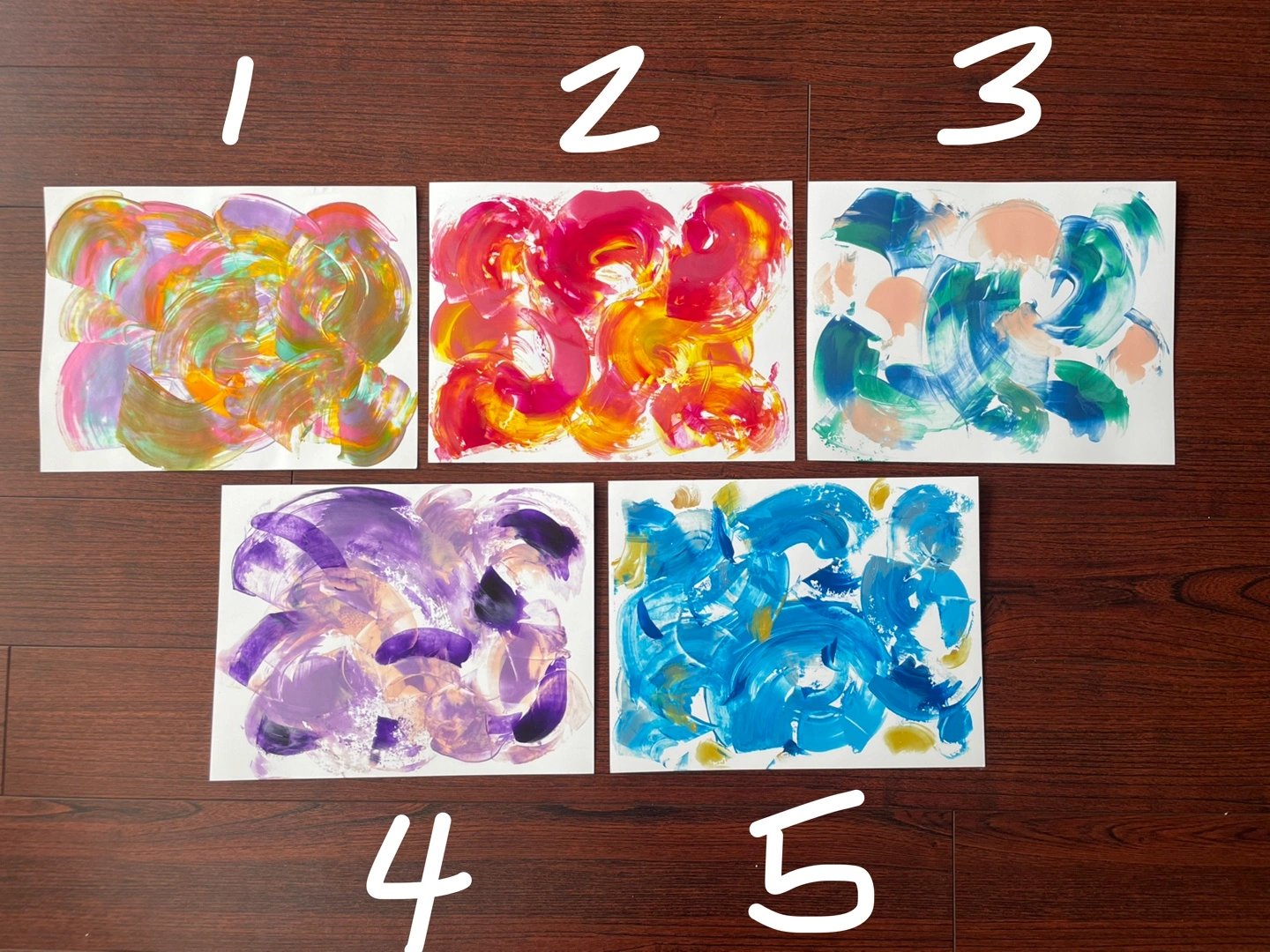 Five unique abstract paintings, hand painted by me - with iridescent paint. Each measure 8.5x11”
