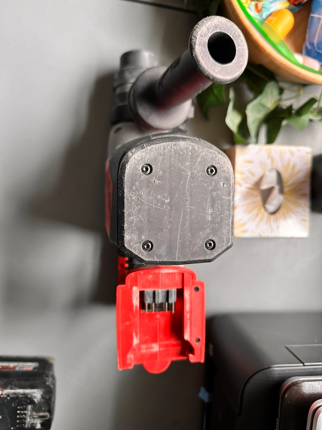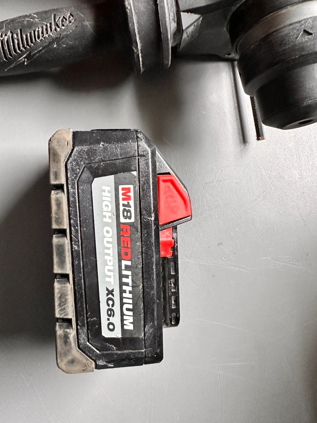 Cordless rotary hammer. Includes battery. One-. Some wear but only need clean cloth.