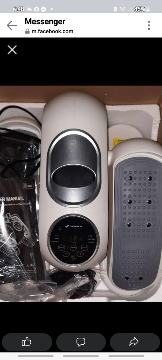 New in box. Electric trainer, under desk pedal machine features digital display. Includes power cord and instruction manual. Compact and easy to store.