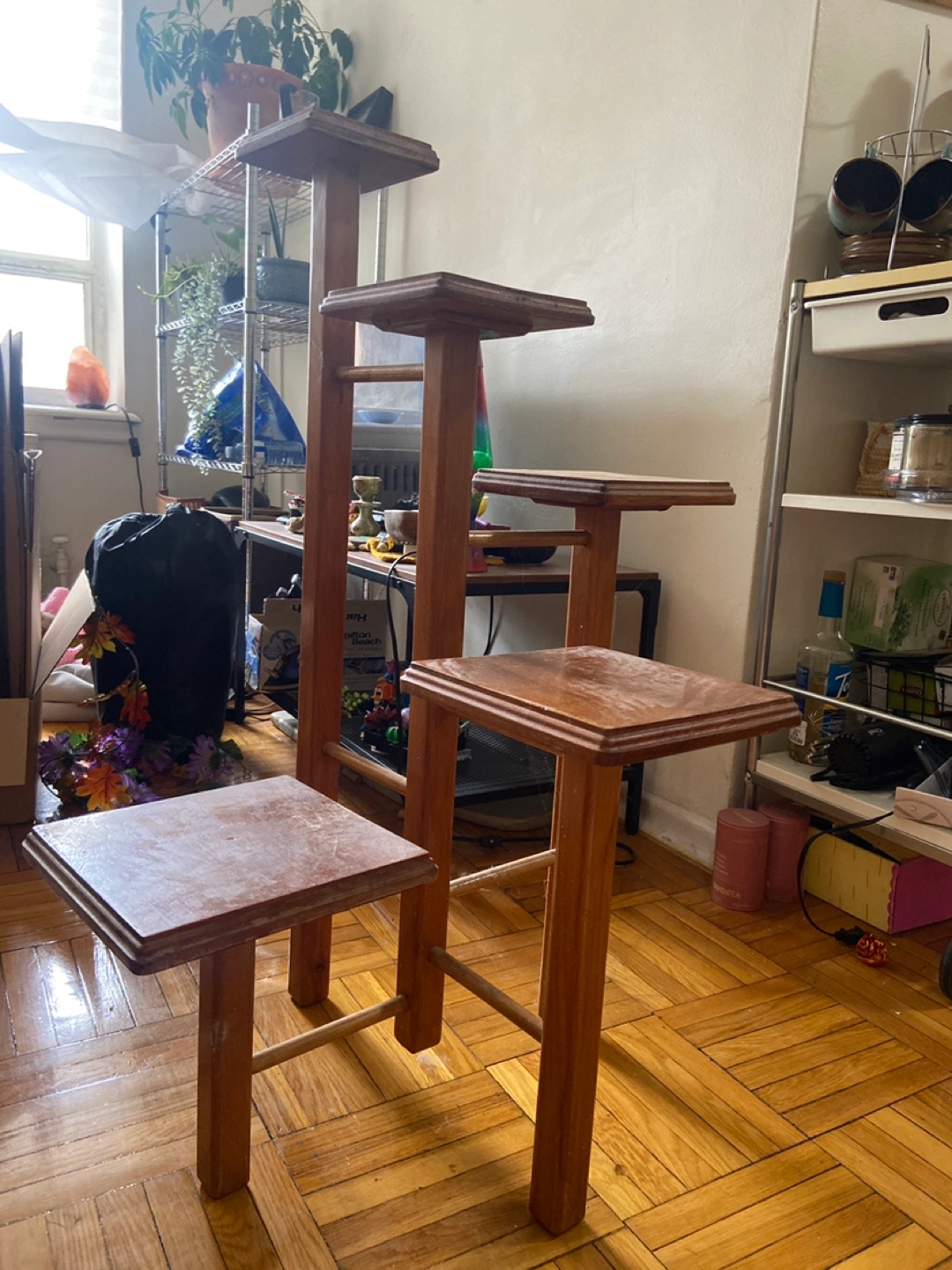 5 tiered wooden plant stand.