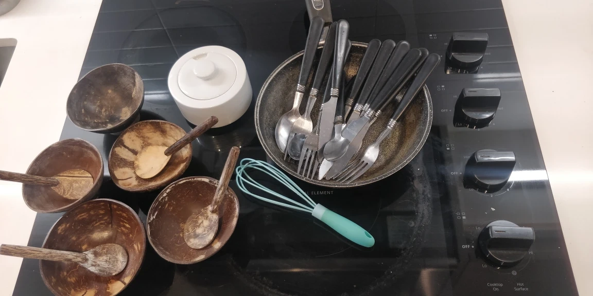 Kitchen Bundle: Pan, cutlery, coconut bowls, garlic roaster