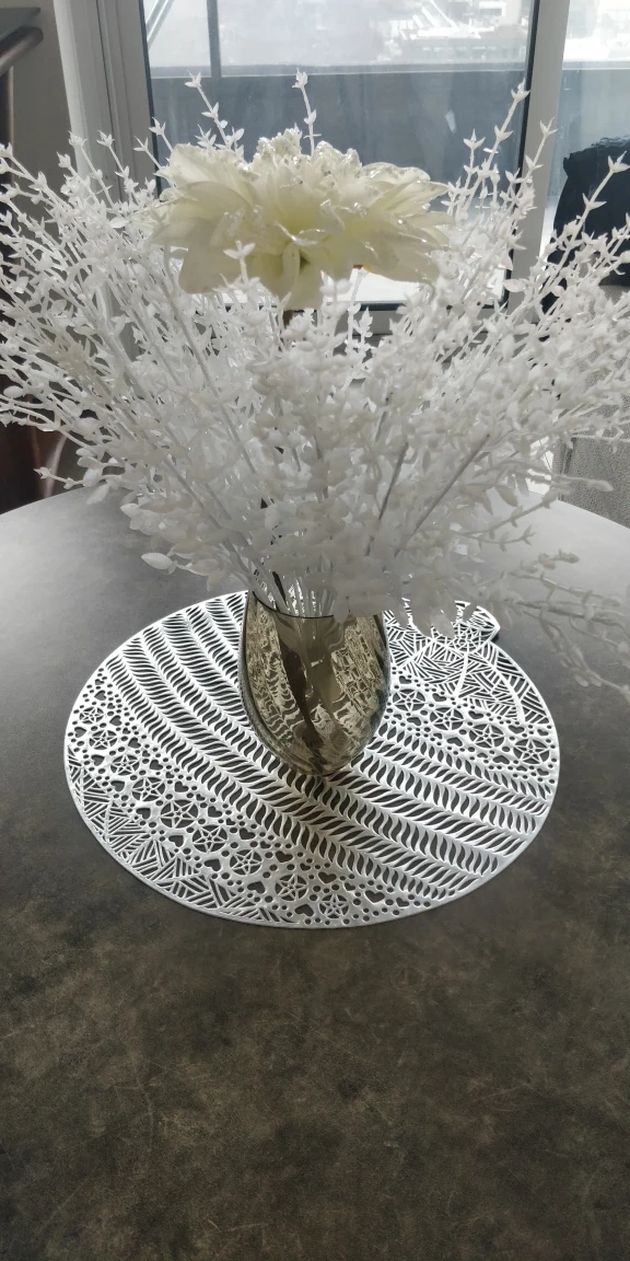 Beautiful white artificial flower arrangement. Features a large dahlia and several sprigs of smaller white flowers. Arranged in a clear glass vase. Perfect centrepiece for any table.