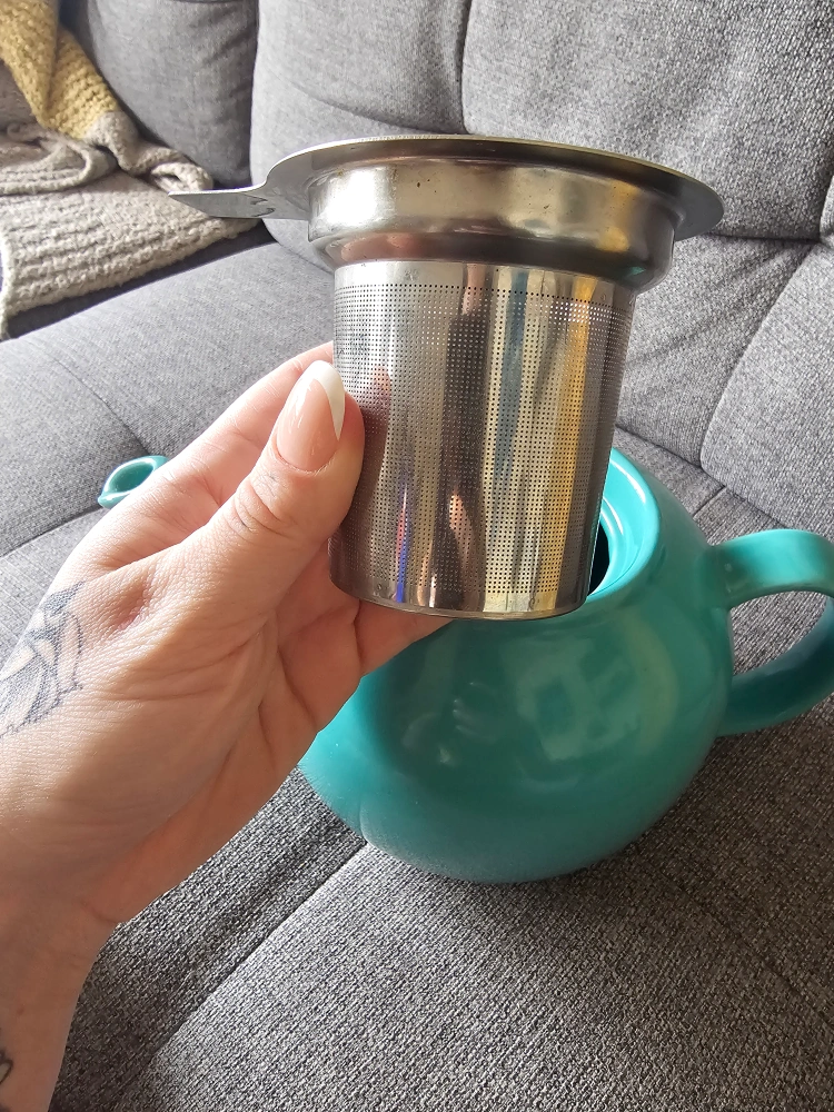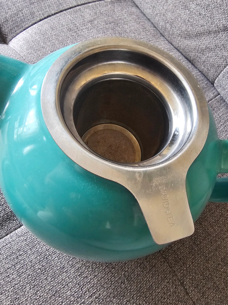 Beautiful teal teapot. Built-in stainless steel infuser. Perfect for a relaxing cup of tea. Gently used.