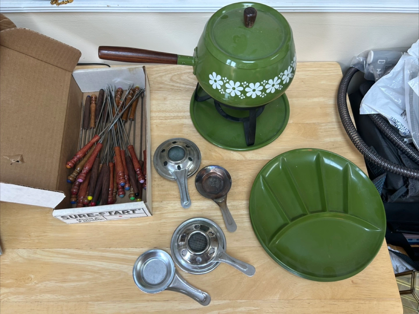 Selling a vintage fondue set in great condition! It comes with the pot, stand, burner, serving plate(4) and fondue forks(31) Perfect for a cozy night in with friends and family