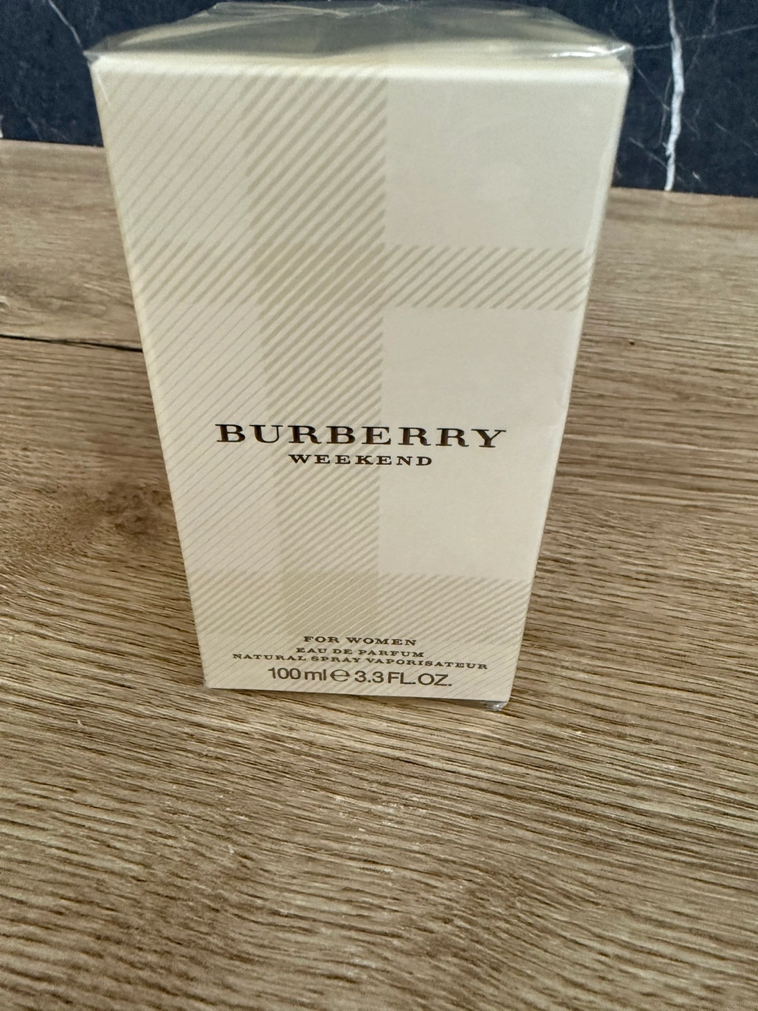75Burberry Weekend Eau de Parfum Volume: 100ml. Condition: new A sheer fragrance with top notes of tangerine, tree sap and Reseda plant Delicate floral heart notes of wild rose, peach blossom, iris and hyacinth, invigorated by a subtle splash of nectarine The low notes of cedar wood and sandalwood add depth for a relaxed and fresh scent Pick up in Mississauga near the intersection of Highways 401 and 403