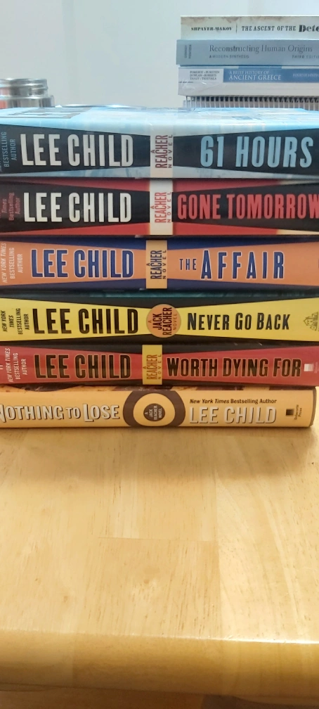Collection of six Jack Reacher novels by Lee Child. Titles include: The Affair, Gone Tomorrow, 61 Hours, Never Go Back, Worth Dying For, and Nothing to Lose. Hardcover books, gently used.