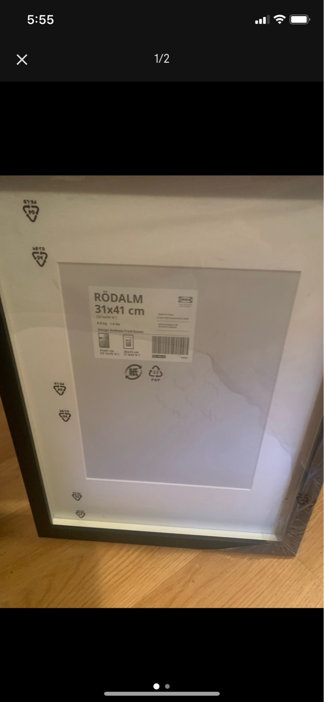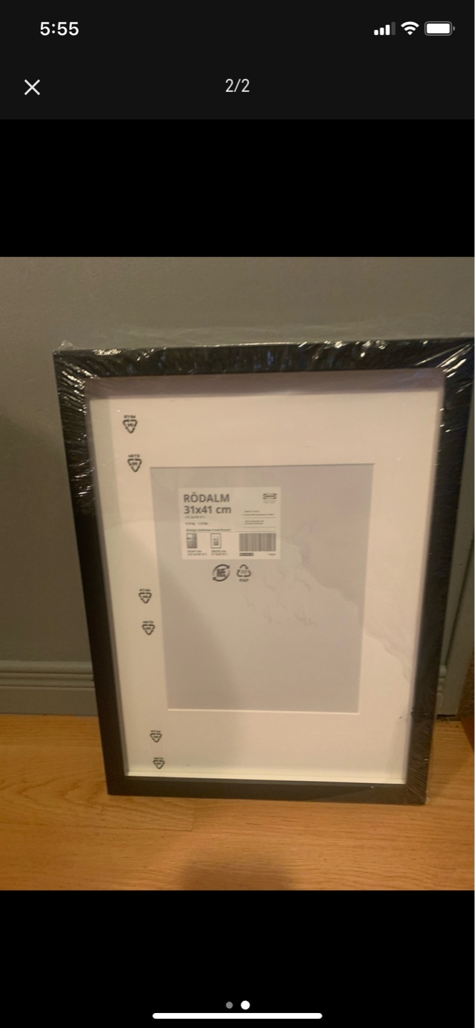 New IKEA RODALM picture frame. Black frame, white mat. Size: 31x41 cm. Ready to display your favourite photos.