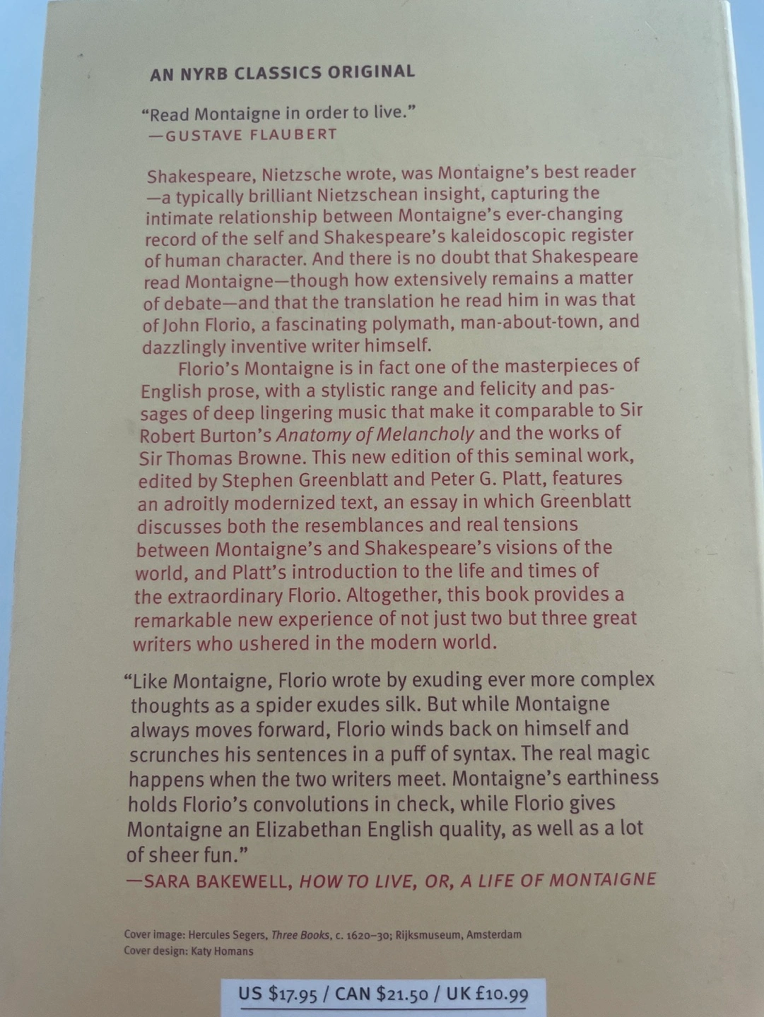 Paperback book. NYRB Classics original. Edited by Stephen Greenblatt and Peter G. Platt. Features an essay which seminal work discusses Montaigne's resemblances and real tensions between both the introduction to the life and visions of the world, and new experience.