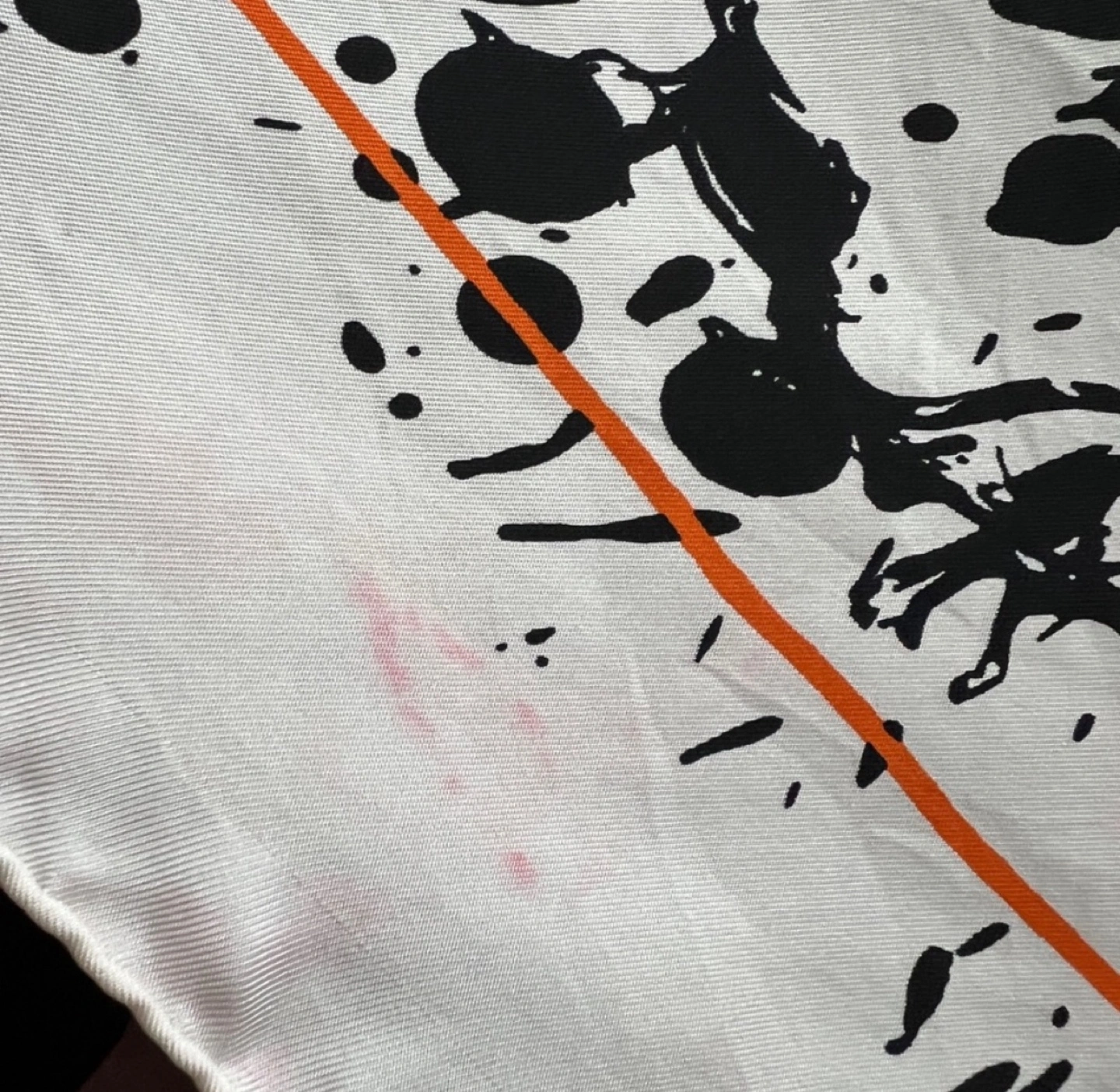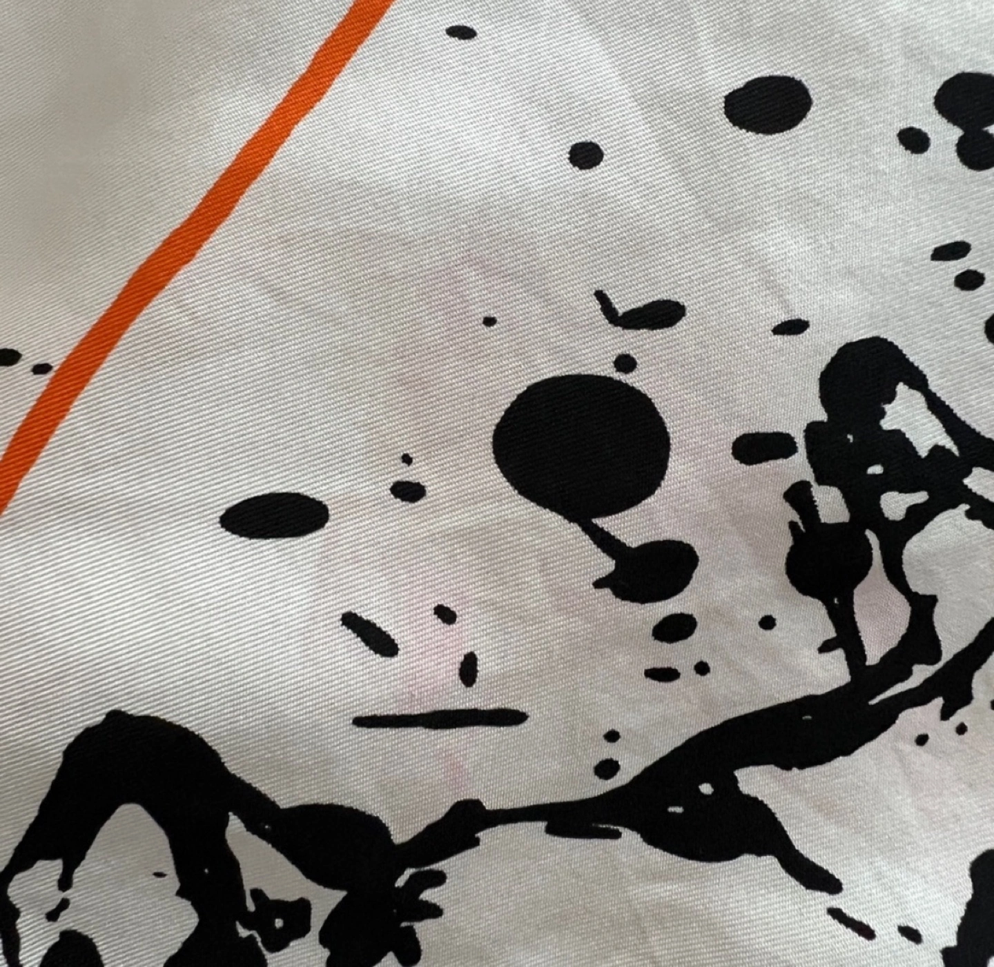 Splash of black on white with a thin orange border