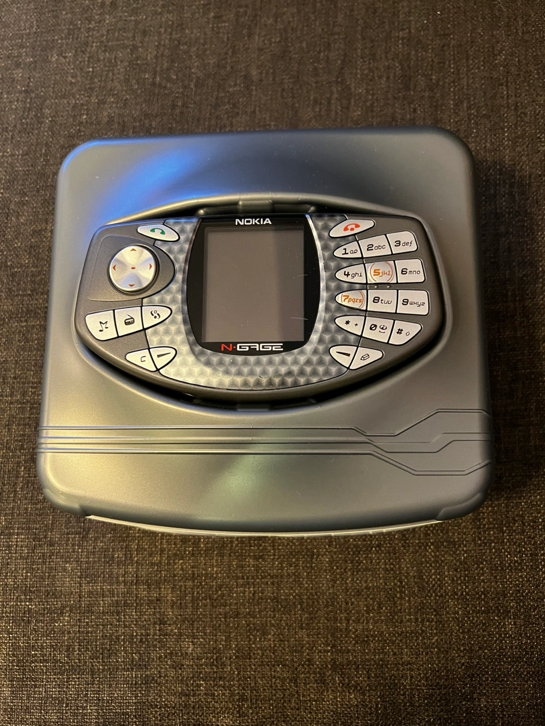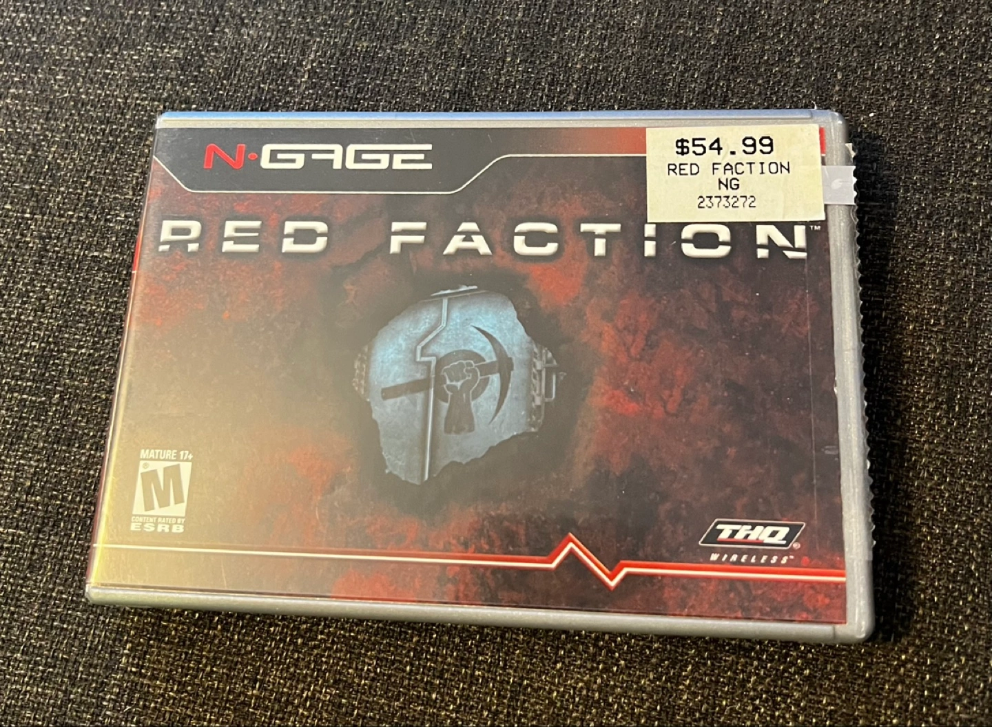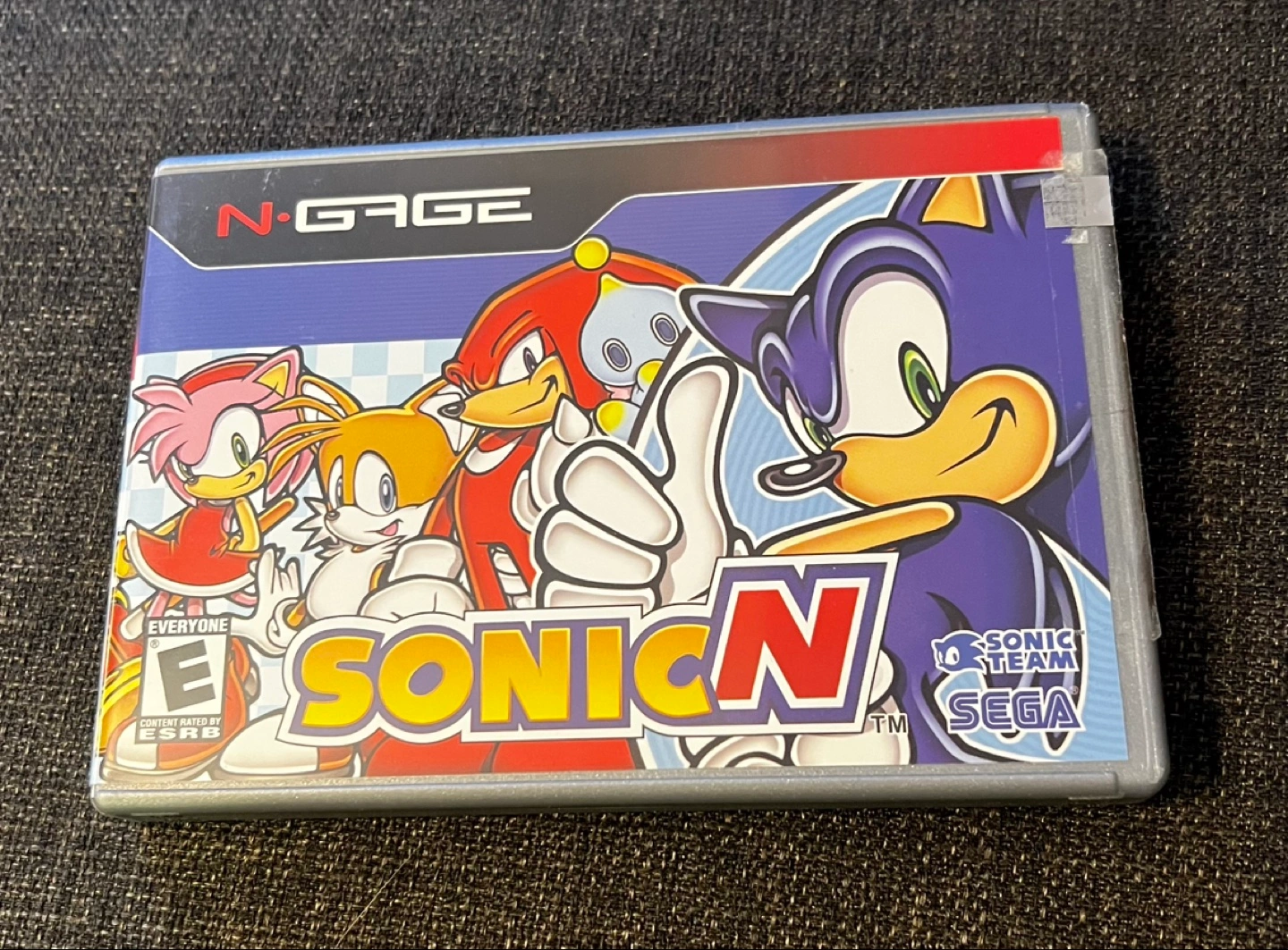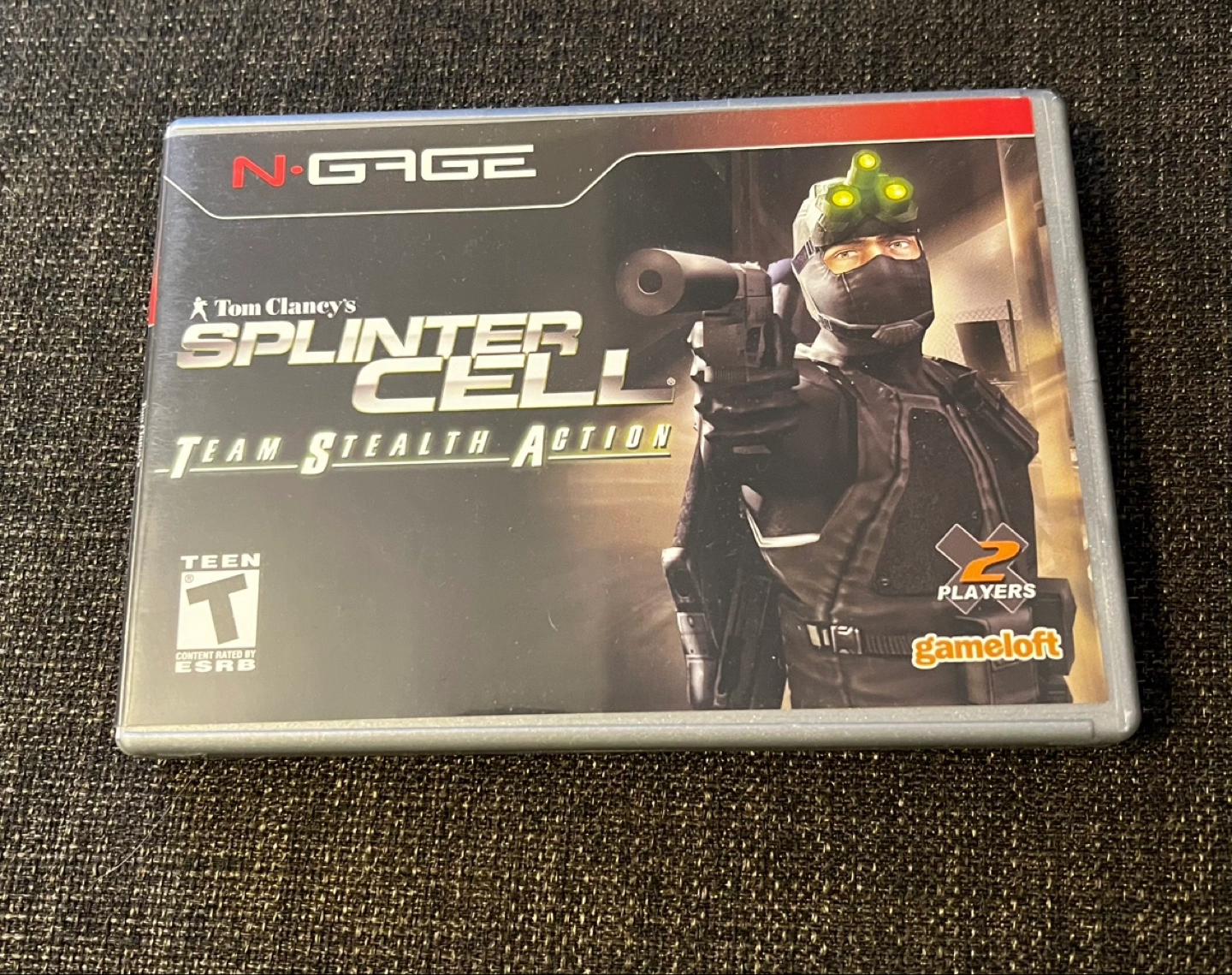 81Pre-owned Nokia N-Gage console. Includes four games: Tomb Raider Starring Lara Croft, Tom Clancy's Splinter Cell, SonicN, and Red Faction. Original box included. Great for collectors. Needs new battery.