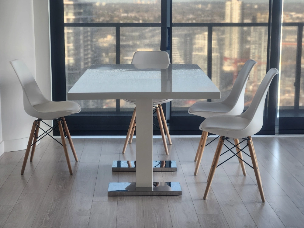 Come with the extra leaf top, you can extend the table to seat from 4 to 8 people.