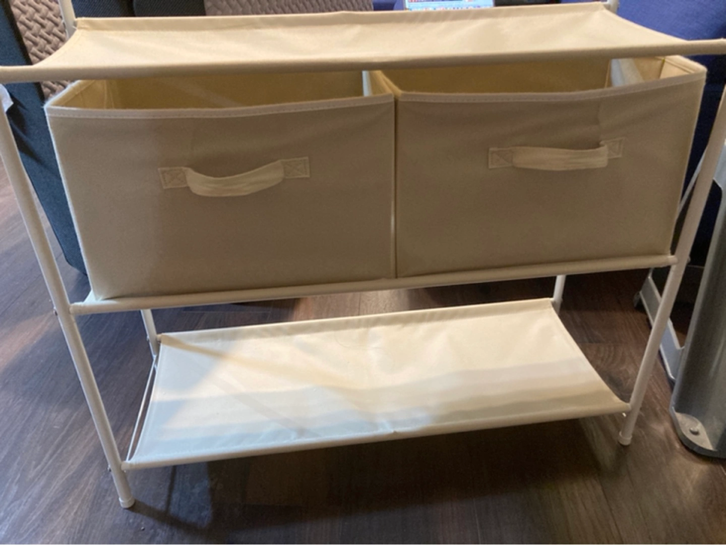 Three-tier closet organizer with two drawers. Beige/off-white colour. I can’t find the original Amazon listing but I took a screenshot of a similar one.