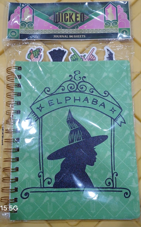 Spiral-bound journal. Features Elphaba silhouette and includes stickers. 96 sheets of paper.