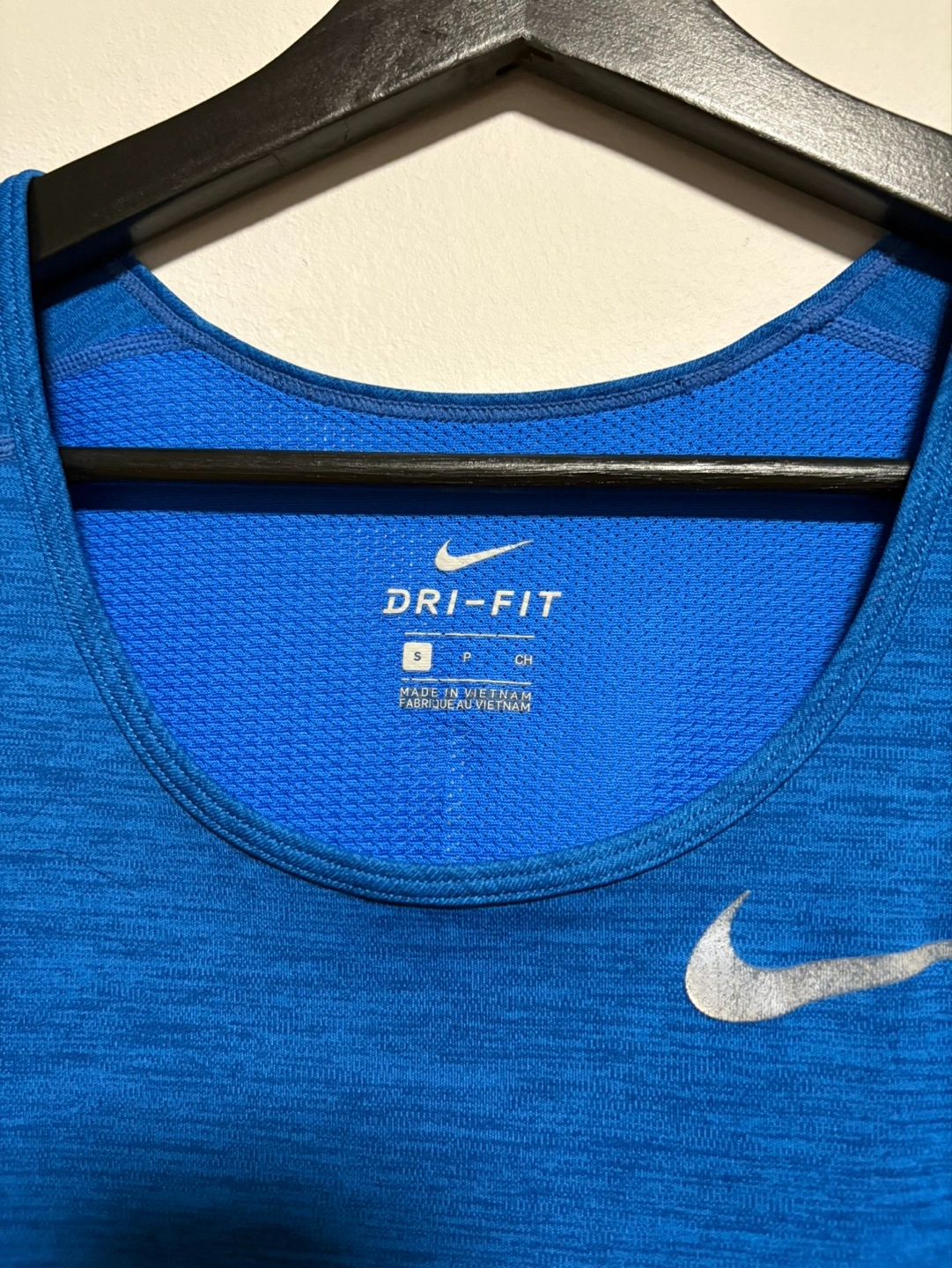 Men's Nike Dri-FIT running tank top. Size small. Blue colour. Moisture-wicking fabric. Great for workouts.