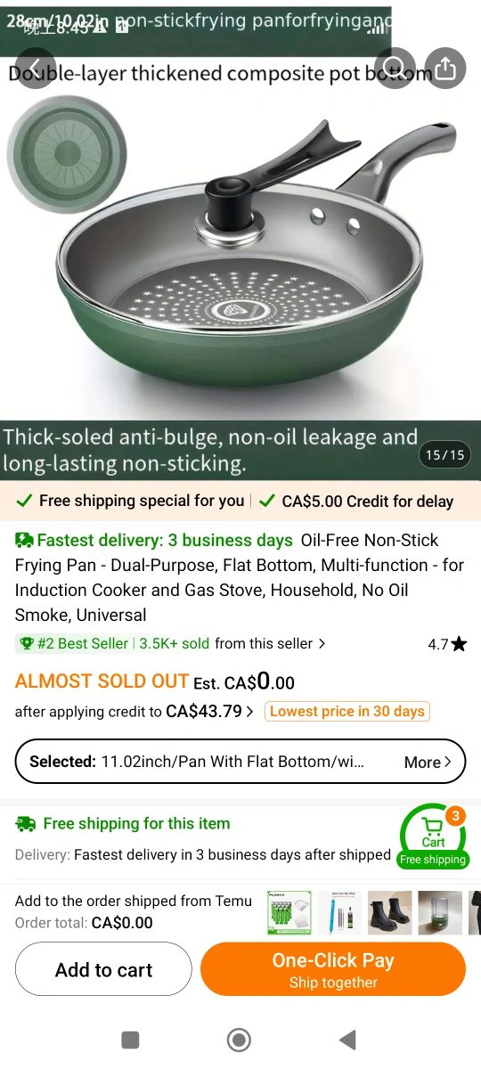 Double-layer thickened composite pot bottom. Thick-soled anti-bulge, non-oil leakage and long-lasting non-sticking. Non-stick and easy to clean. Flat bottom, multi-function for induction cooker and gas stove. Refuse to stick.100% New 28cm