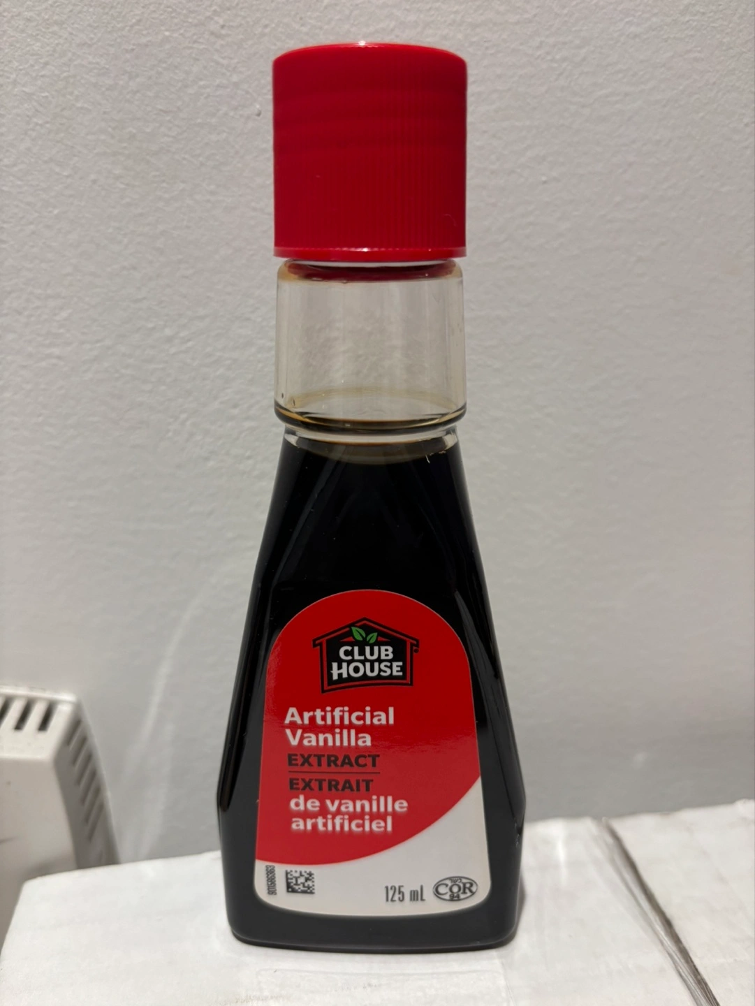 Bottle of Club House artificial vanilla extract. 125 ml bottle. Red cap. Used a little bit. Expiry 2026 Sep 14.