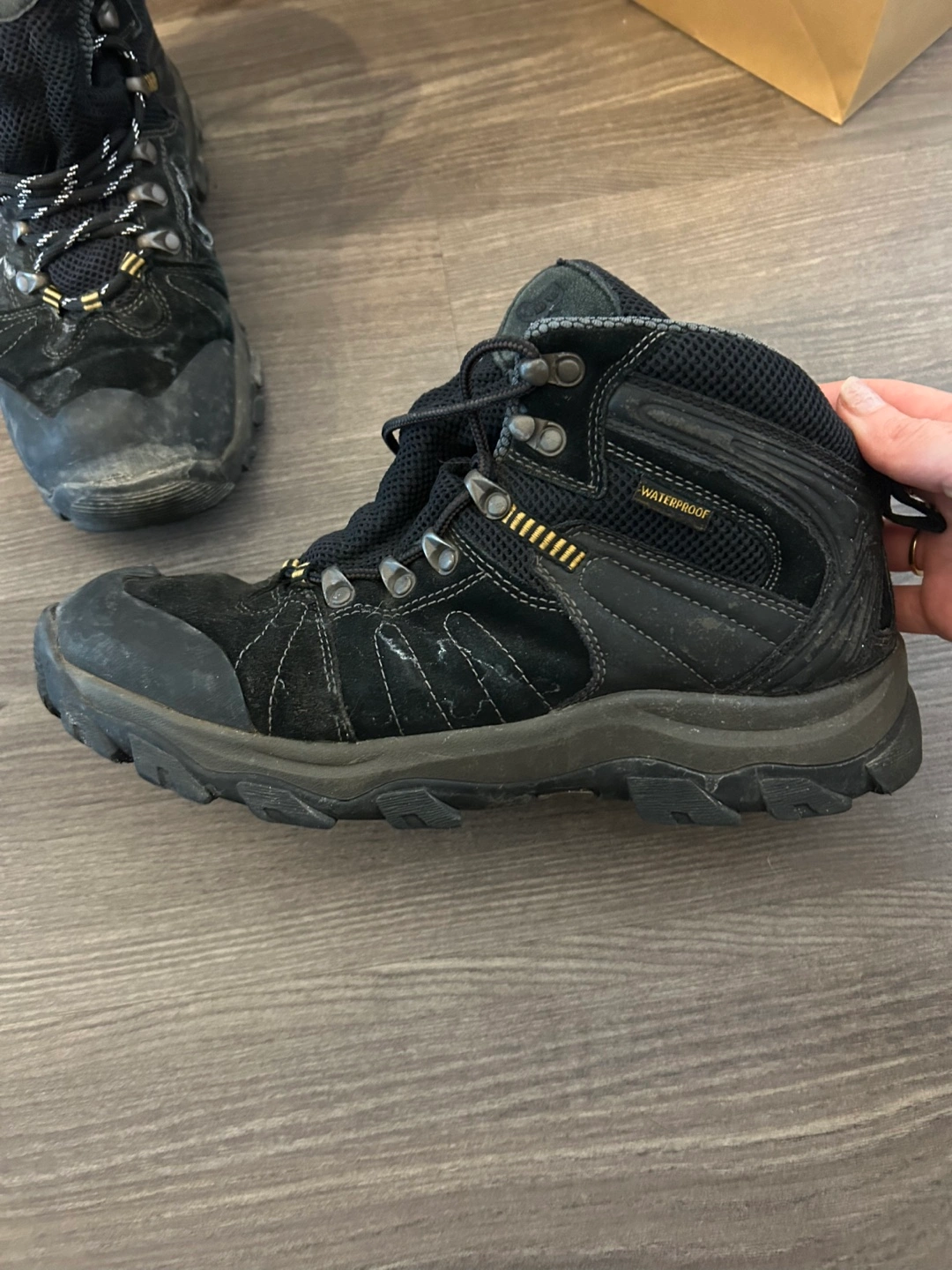 Black, mid-height, waterproof.