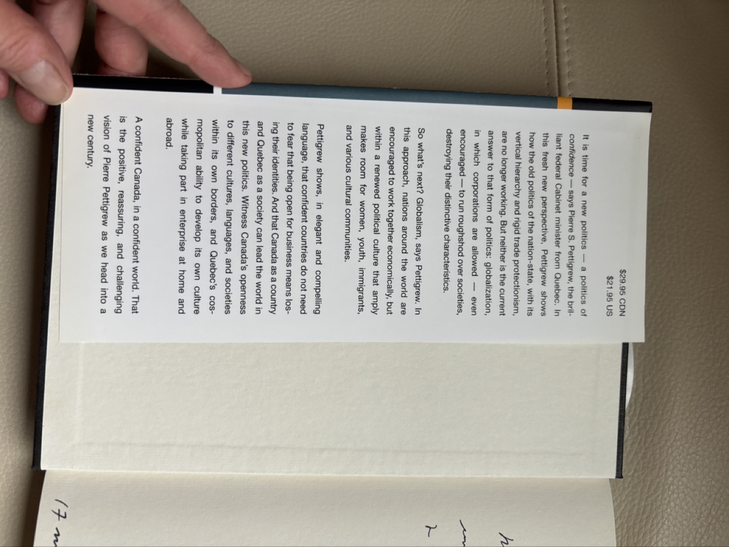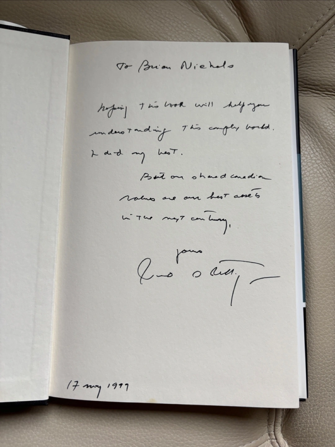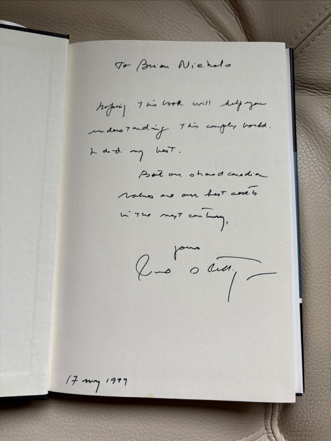 First edition hardcover book by former Quebec cabinet , Pierre S. Pettigrew and signed by him. Translated by Phyllis Aronoff and Howard Scott. Published by Stoddart. Excellent condition including dust jacket. From a smoke and pet free home. Pickup only in the St Lawrence market area of downtown Toronto. Cash only.
