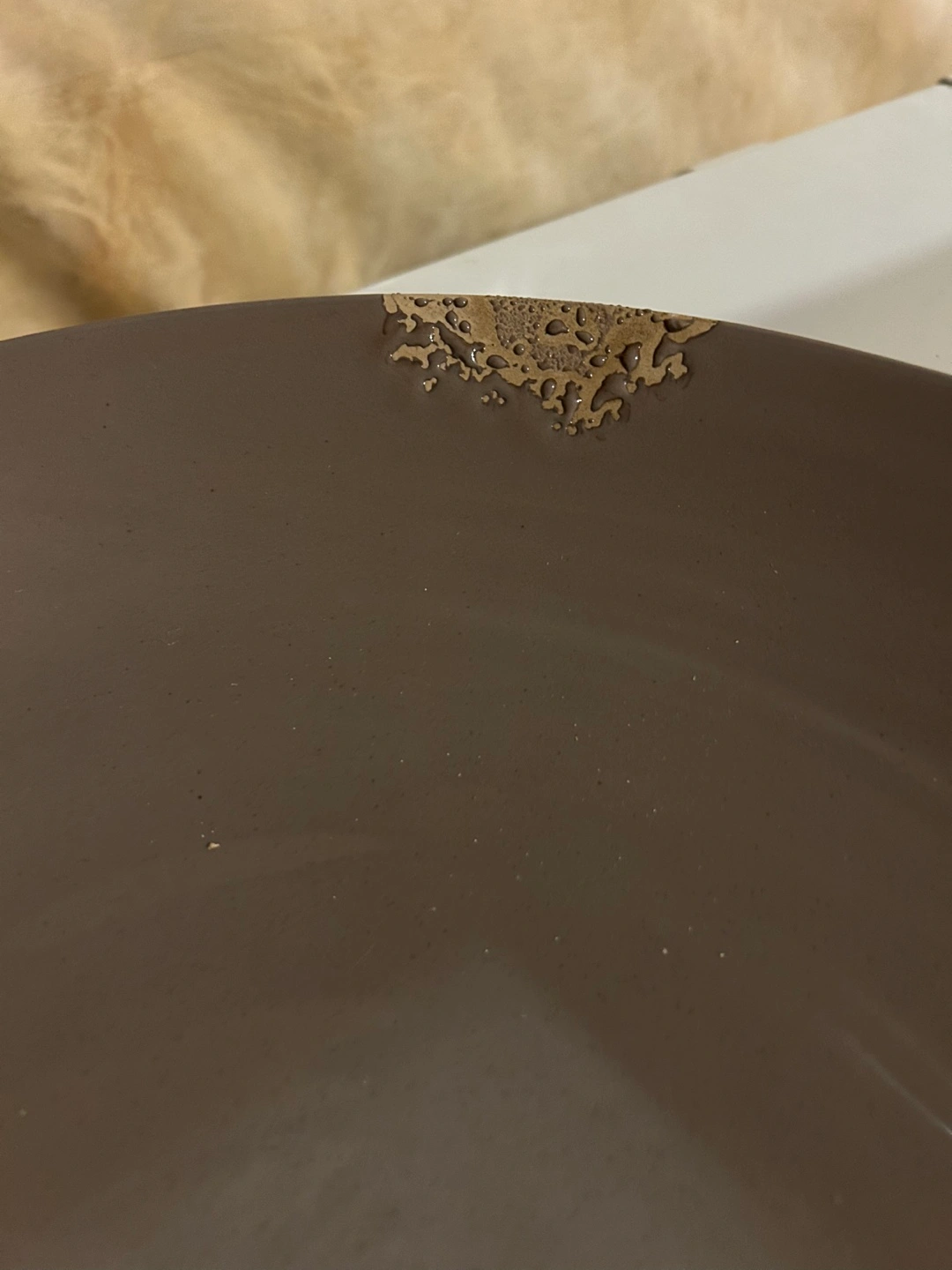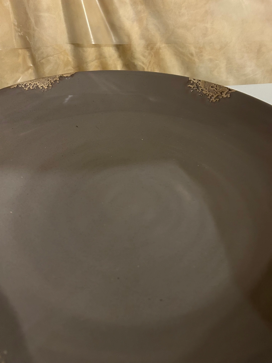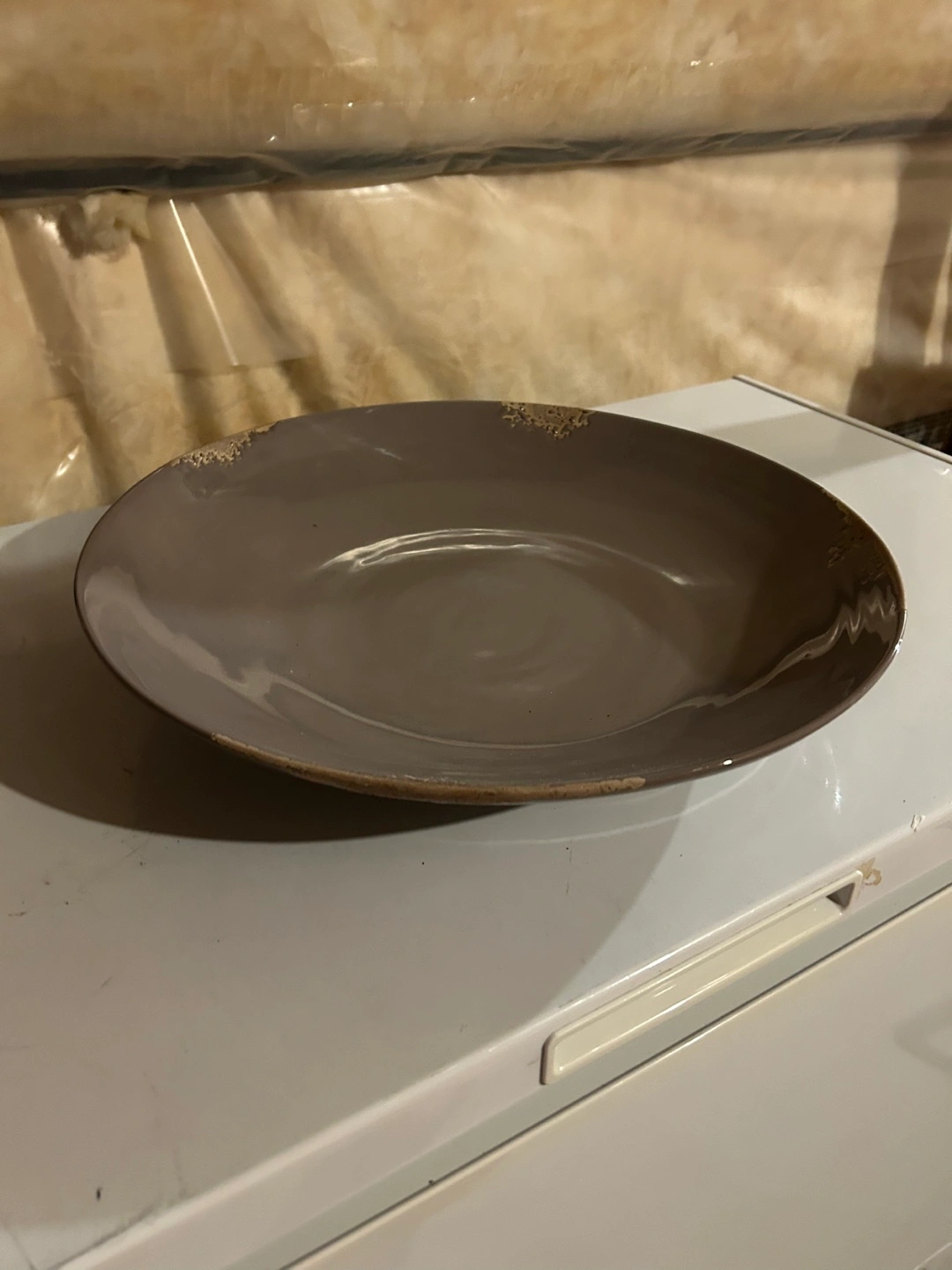 Made in Italy 🇮🇹, Large, round serving platter. Mauve colour. Shows some minor chipping to the glaze. Made in Italy. Excellent for rustic decor.