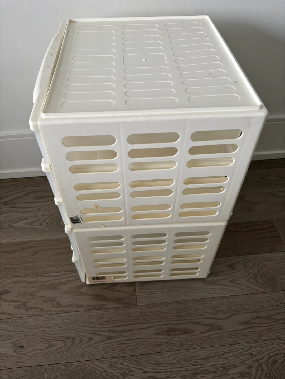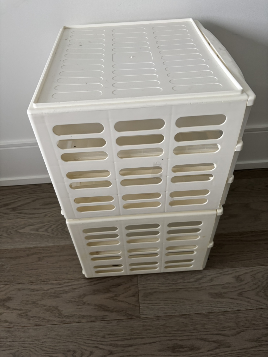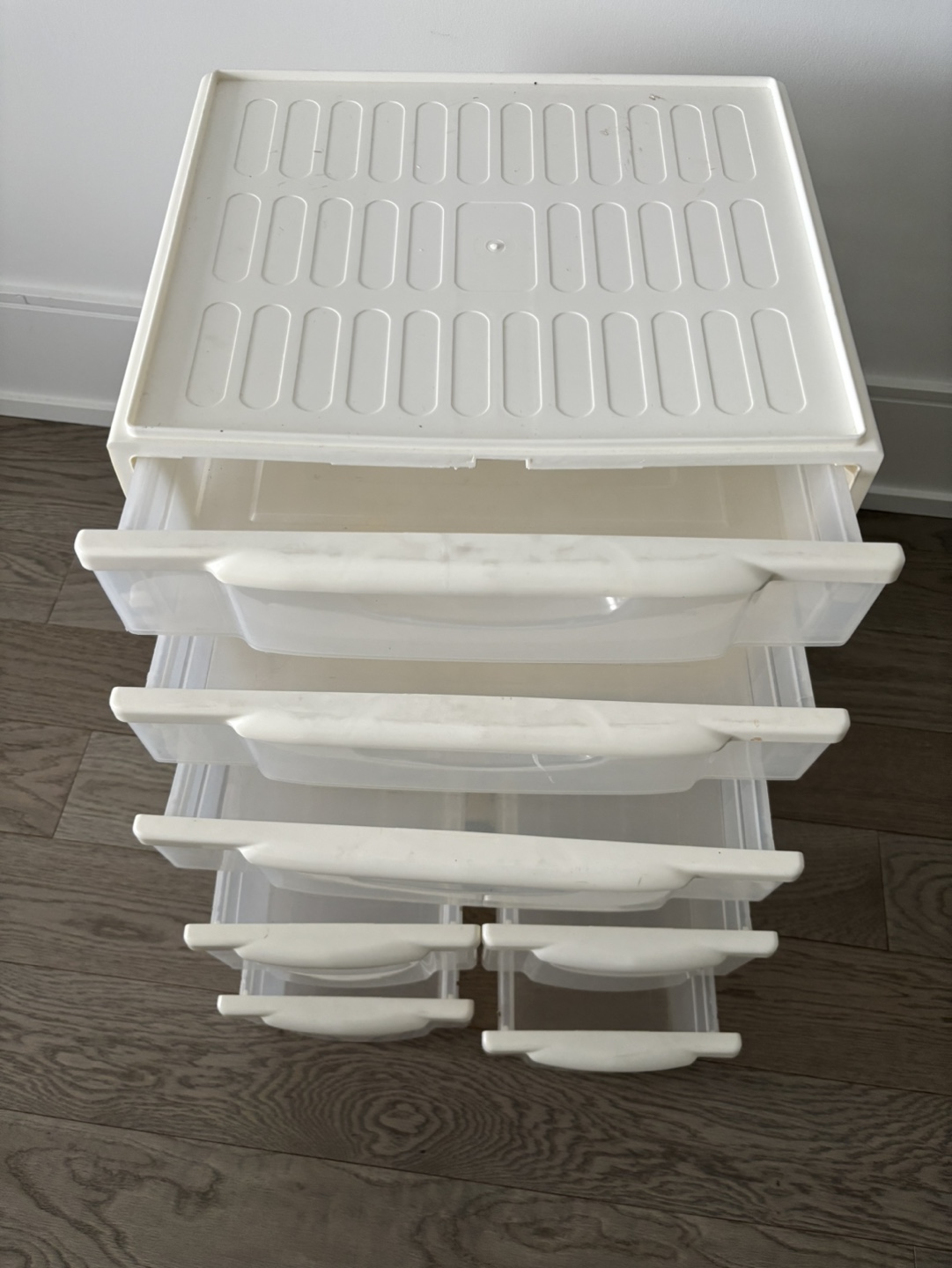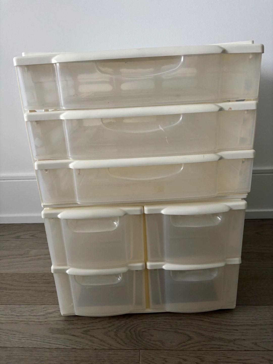 Two stackable plastic drawer units. Multiple drawers for storage. Good for organizing small items. Pickup at Eglinton and Leslie