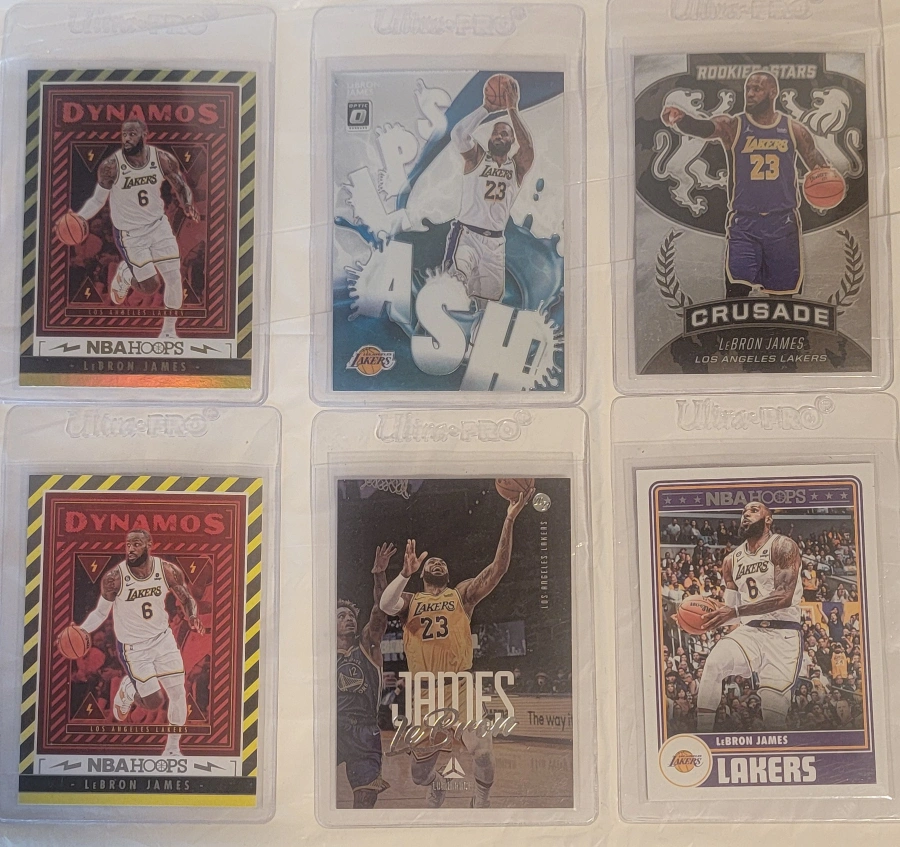 310Collection of six LeBron James trading cards. Includes various designs and sets. Ultra Pro sleeves. PLEASE MAKE AN OFFER $$