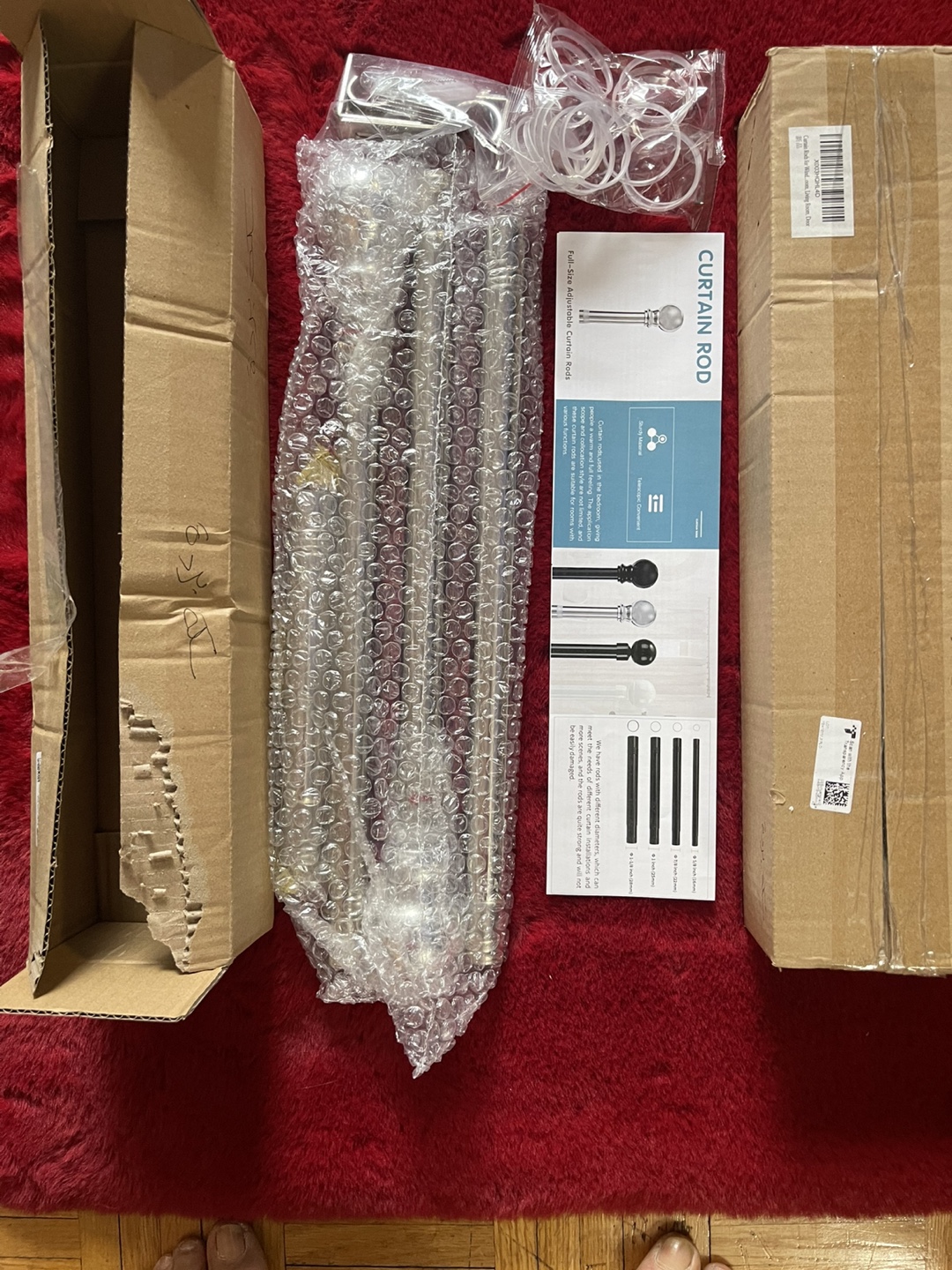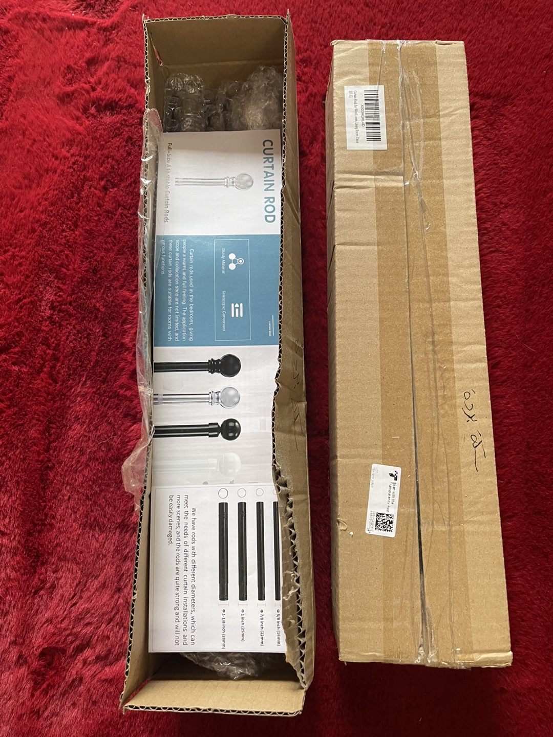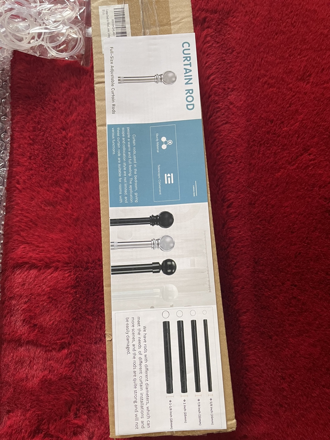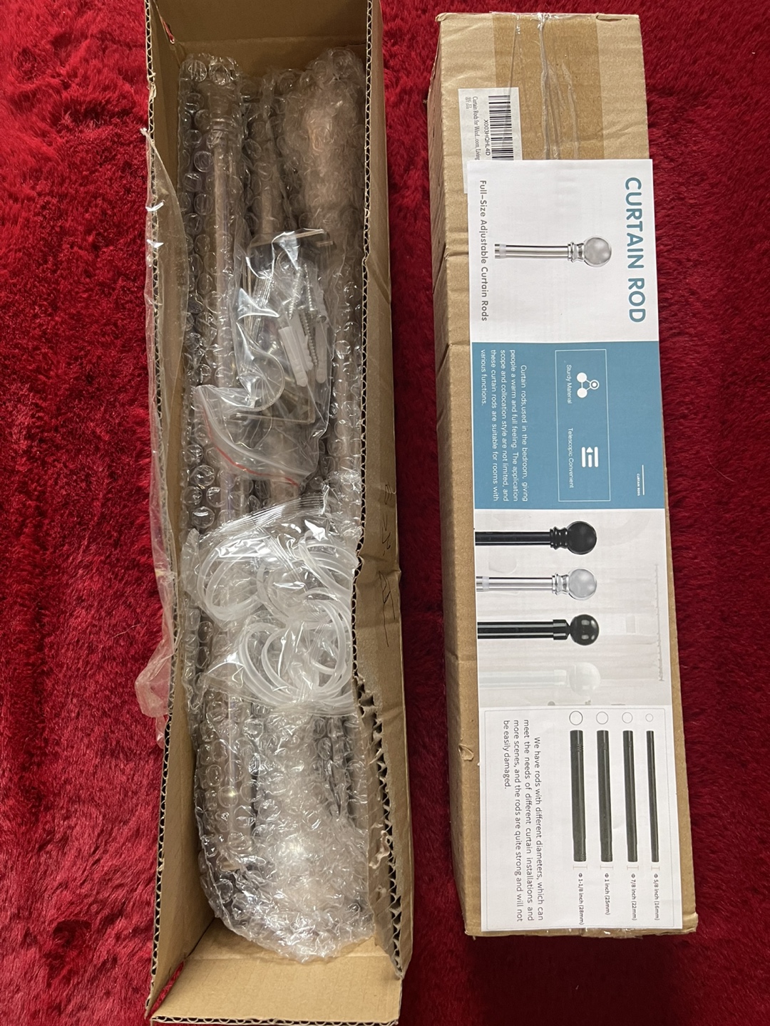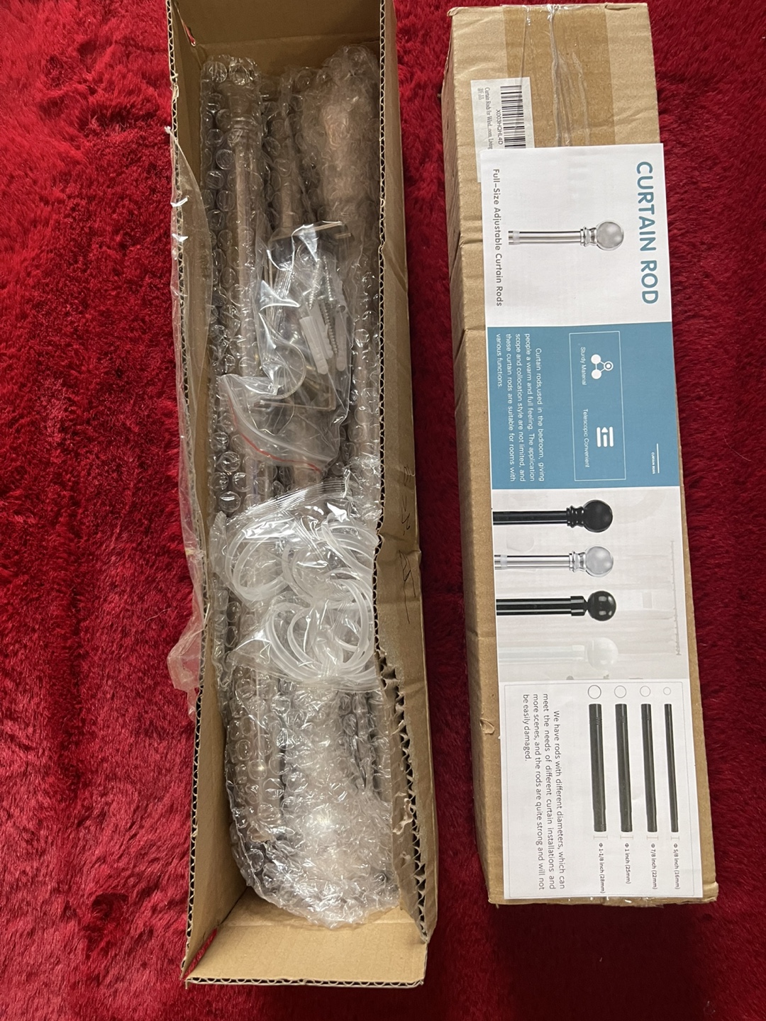 2- Brand new in box, adjustable curtain rod. Includes hardware and finials. Multiple sizes available.