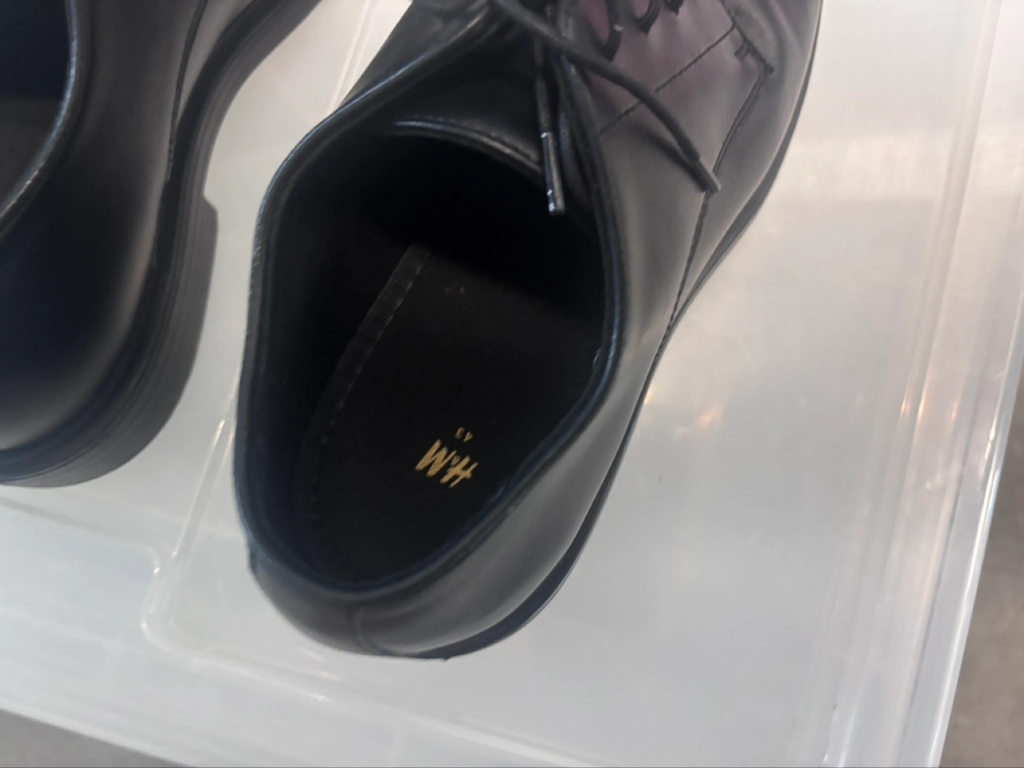 Pair of men's black shoes. Lace-up closure. Simple, classic style. Good for work or formal occasions.