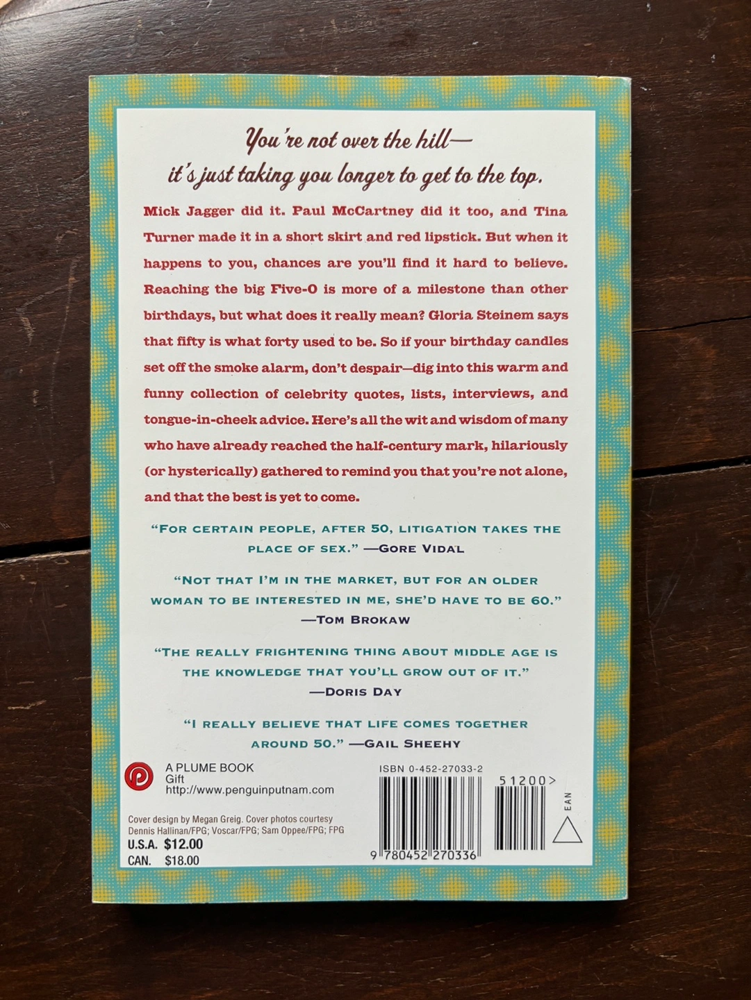 979Paperback book. Quotes, lists, and helpful hints for turning 50. Features many celebrity quotes and interviews. Makes for a great fun gift. Pristine condition. From a pet and smoke free home. Pickup only in the S Lawrence market area of downtown Toronto. Cash only.