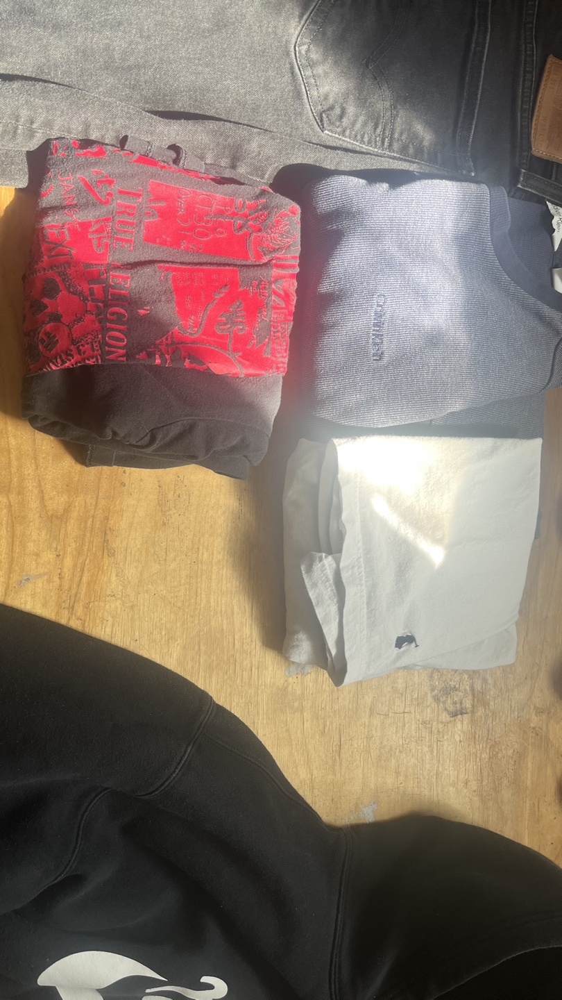 - multiple shirts (true religion, Calvin Klein, Polo Ralph Lauren)