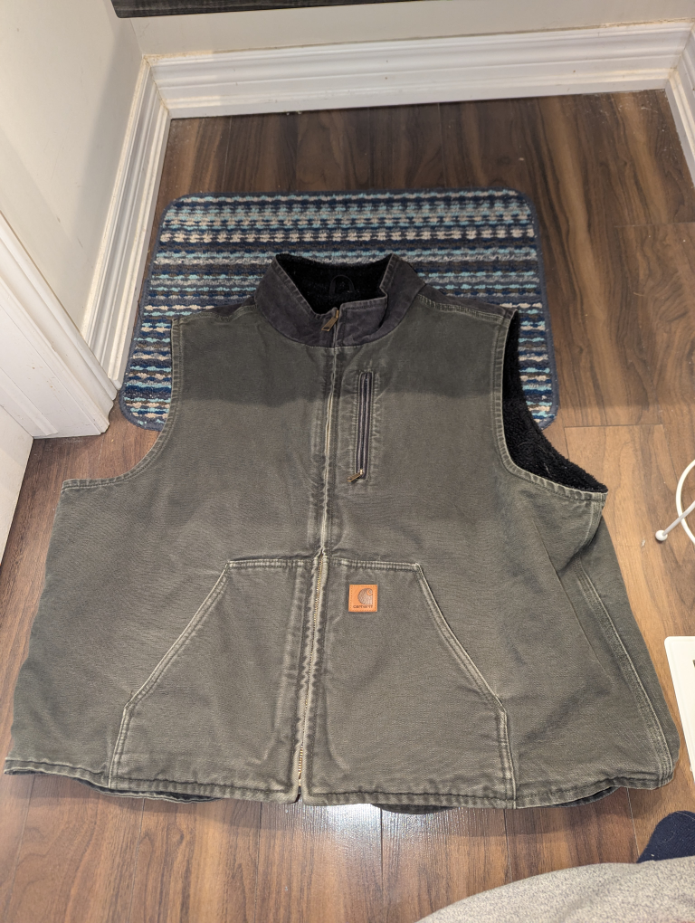 1 / 41 / 4Buy & SellCarhartt Men's 2XL Insulated VestCarhartt Men's 2XL Insulated Vest$60Men's Carhartt insulated vest. Size 2XL. Dark grey colour. Fleece lining. Zipper closure. Multiple pockets. Made in Mexico.Size2XLBrandCarharttWHERE TO MEETdestiny laneView MapSELLERverifiedMattHannon822 reviews0 chats·0 favorites·10 viewsSEND CHAT TO SELLERHi Matt! I’m interested in your listing.Hi Matt! I’m interested in your listing.Get the Karrot app to chatSign In to chat
