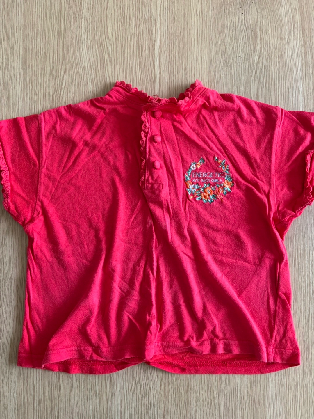 A bundle of kids’ clothing including: Blue sweatshirt from United Colours of Beneton, size M; Hotshot red cotton T-shirt size 8, two pairs of pink pants size 5&6, a set of teal blue sweatshirt and pants, and a pair of jeans in Size 3. There are 7 items in total for the listed price. All in very good condition.