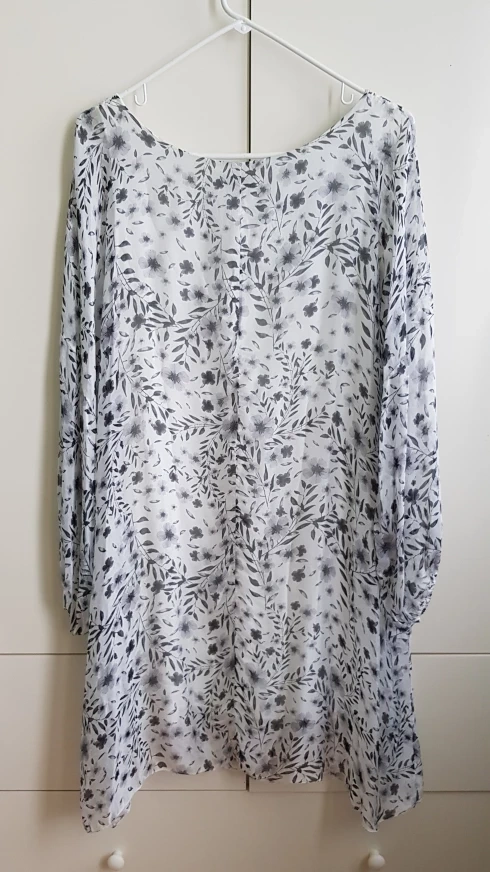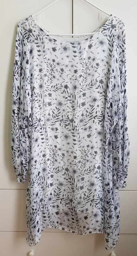 Lightweight mini dress. Long sleeves. Floral print. Made in Italy. 70% viscose, 30% silk.
