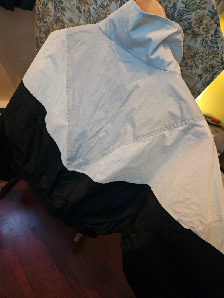 Women's cropped track jacket. Colourblocked design. Features a zipper closure, elastic cuffs and hem. Mesh lining. Size small.